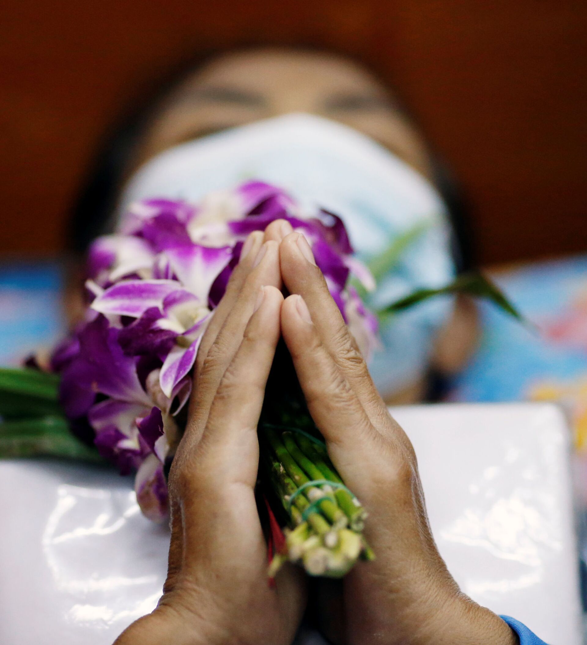 © REUTERS / Soe Zeya Tunالمصلون يستلقون ويصلون داخل توابيت لـ "خداع الموت وتحسين حظهم" في معبد في بانكوك، تايلاند، 27 يناير 2021