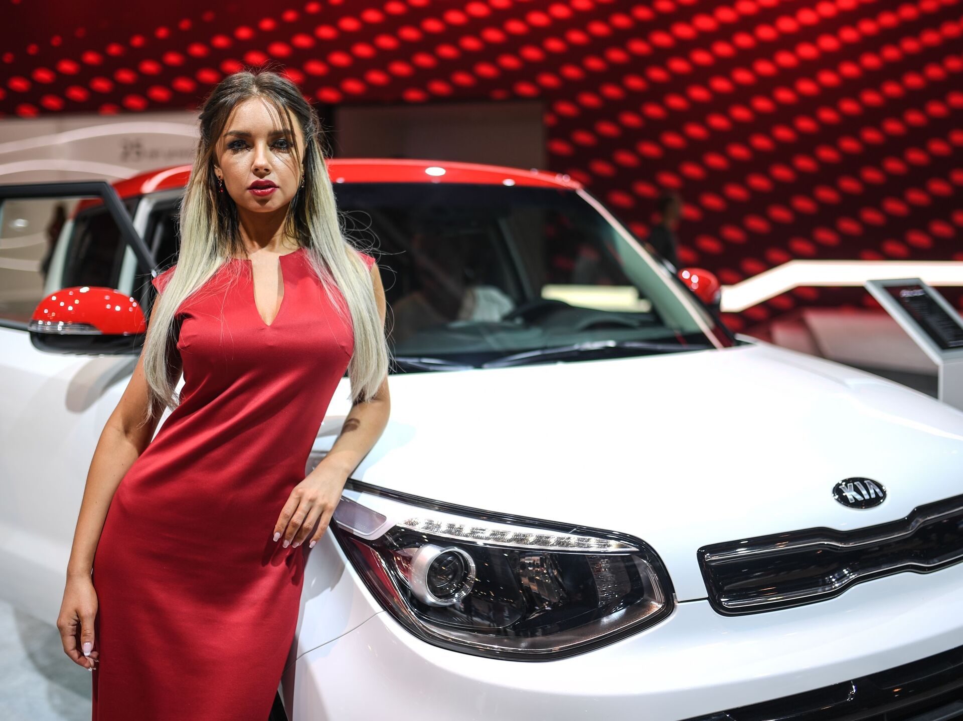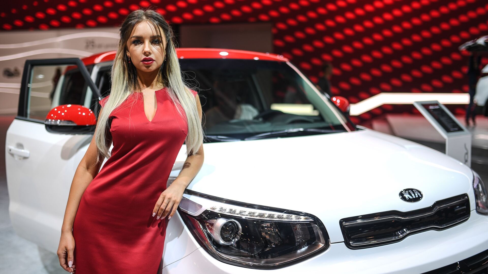 عارضة أزياء تمثل شركة كيا في معرض موسكو الدولي للسيارات 2018 - سبوتنيك عربي, 1920, 09.03.2021