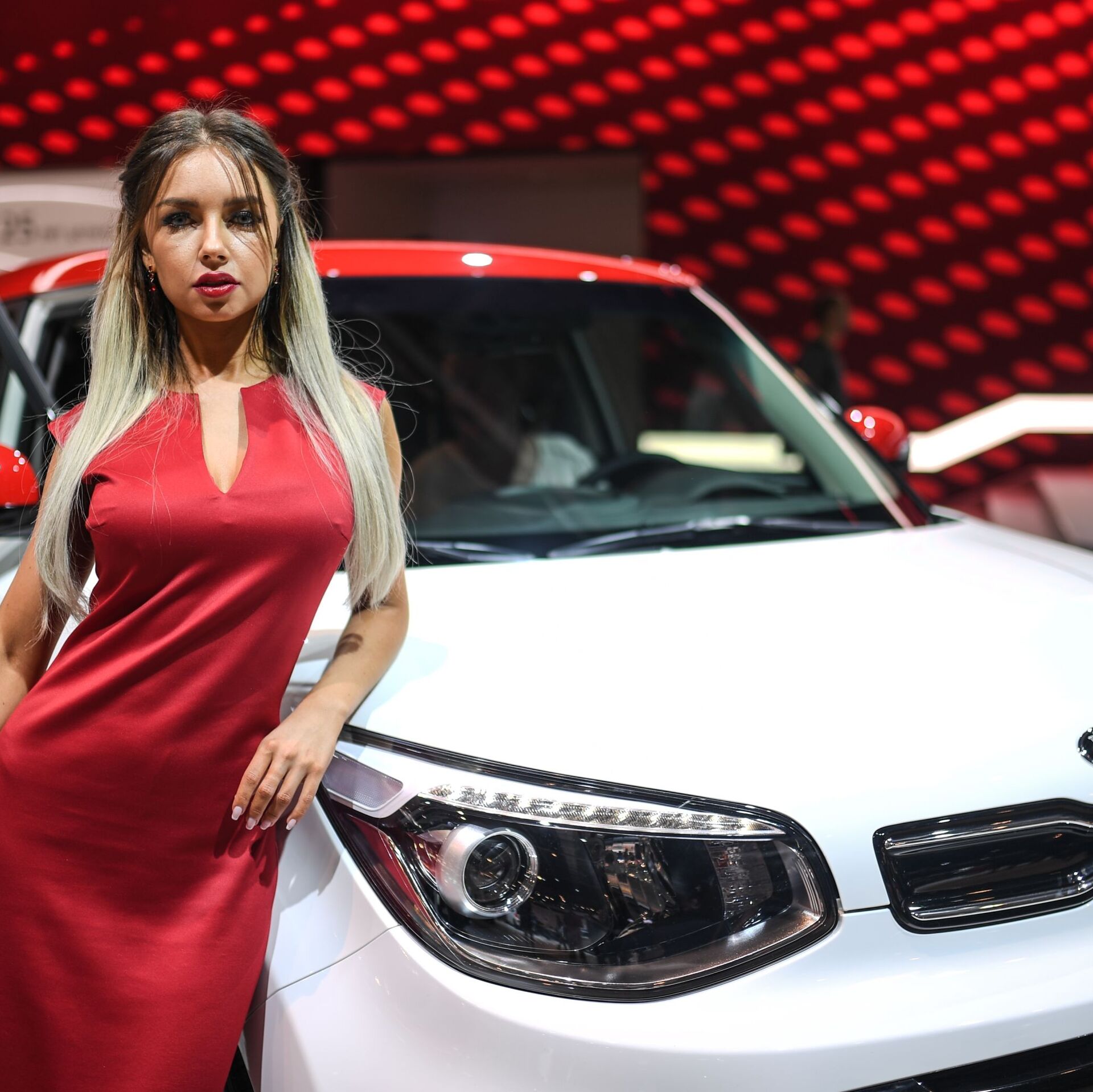 © Sputnik . Evgenya Novozhenina / الانتقال إلى بنك الصور عارضة أزياء تمثل شركة "كيا" في معرض موسكو الدولي للسيارات 2018