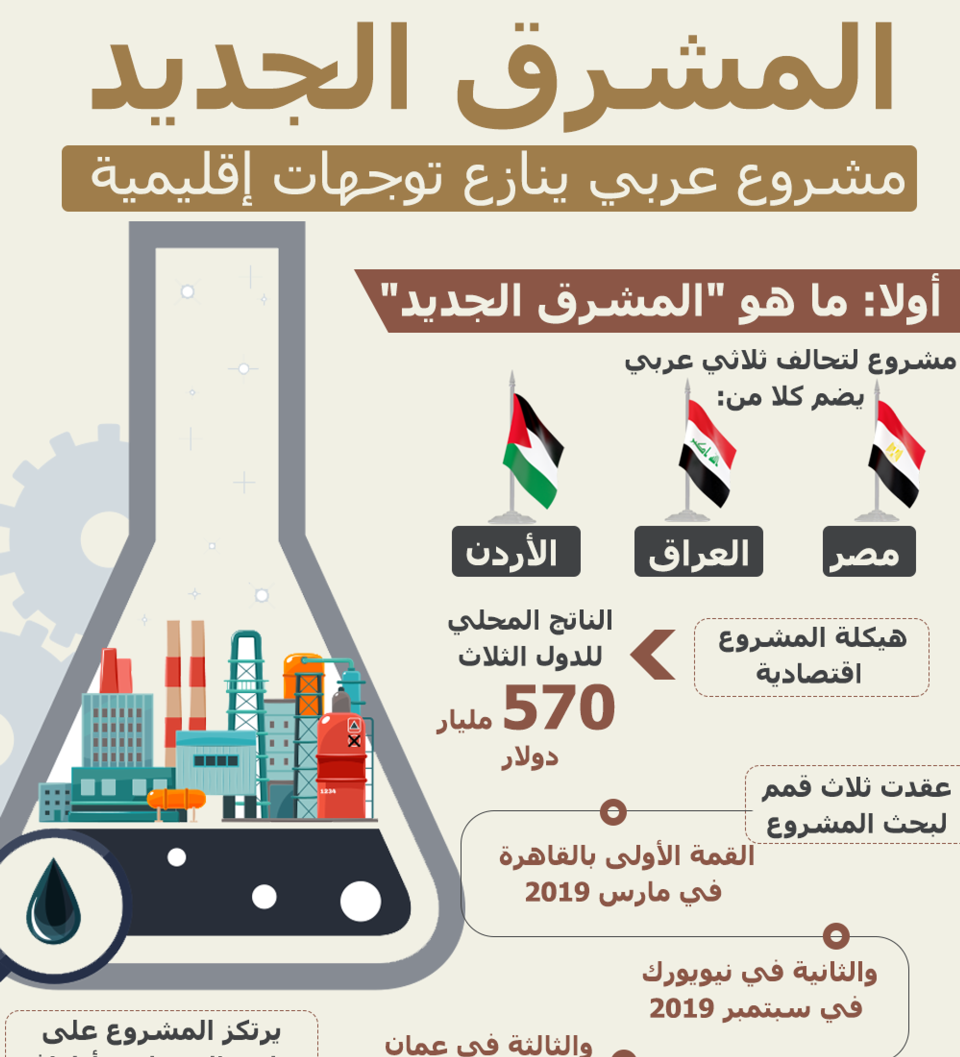 مشروع المشرق الجديد.. أو كما اسماها رئيس الوزراء العراقي مصطفى الكاظمي "خطة المشرق الجديد"... هو تحالف اقتصادي في هيكله يقول مراقبون إنه سياسي في توجهاته، وتلك هي المعضلة.