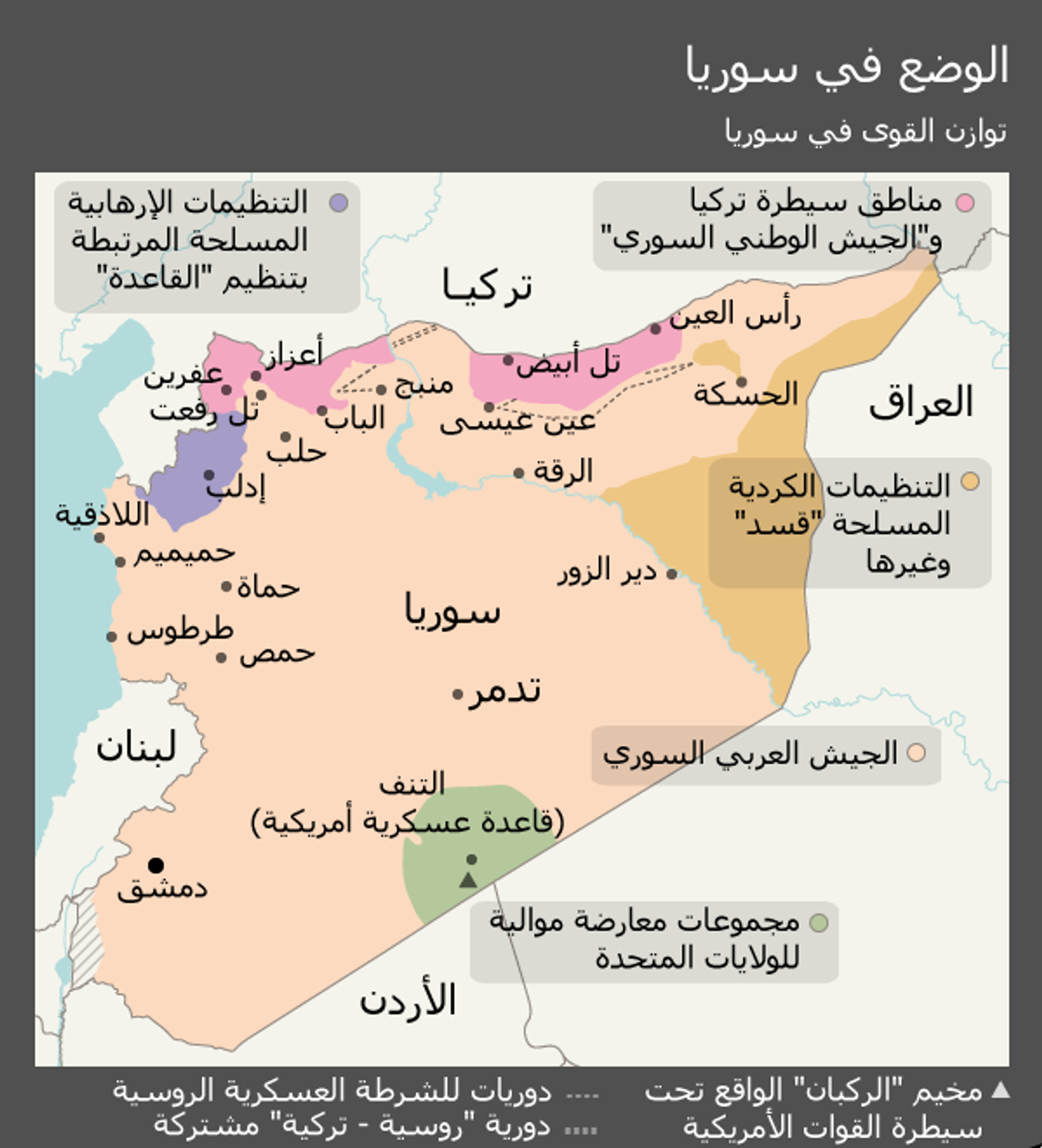 إليكم خارطة توازن القوى في سوريا حتى يوم 18 آذار / مارس 2021.