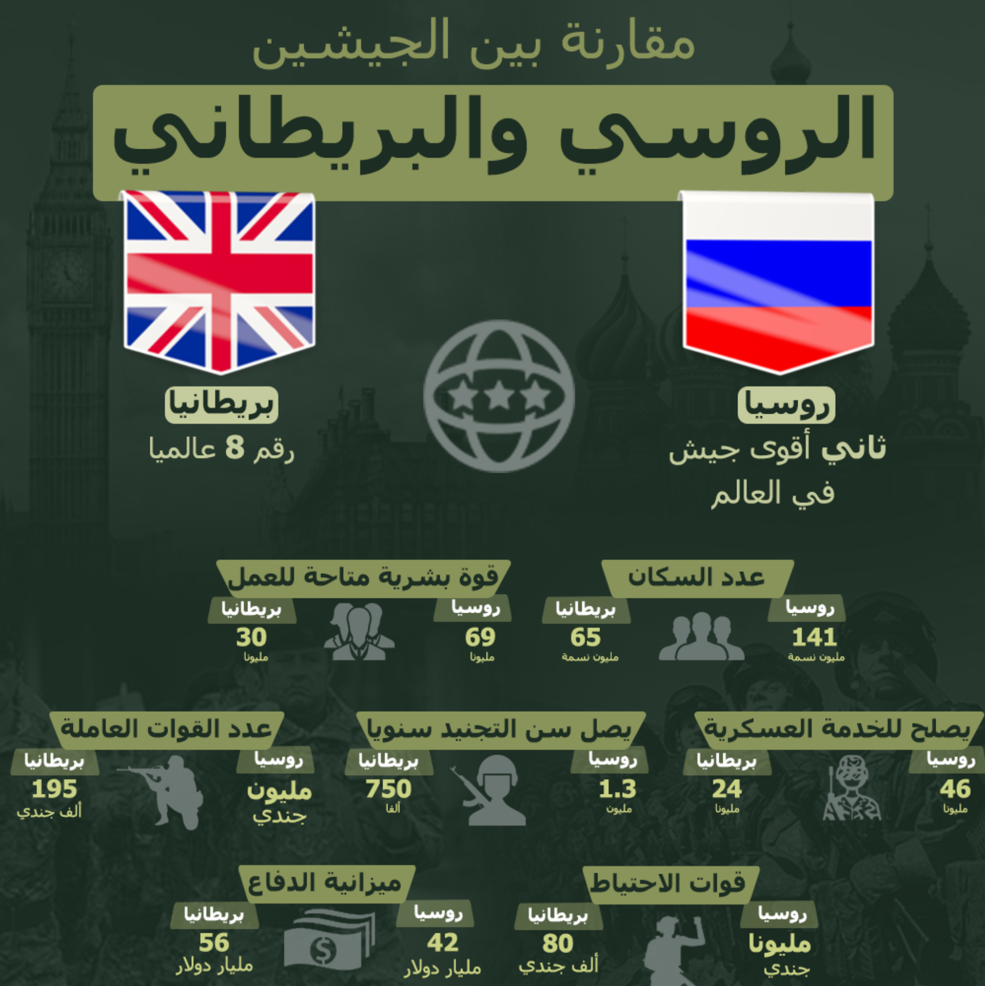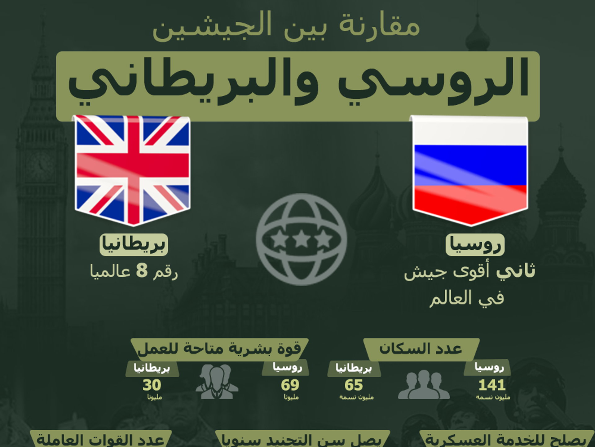 مقارنة بين الجيشين الروسي والبريطاني (إنفوغرافيك)