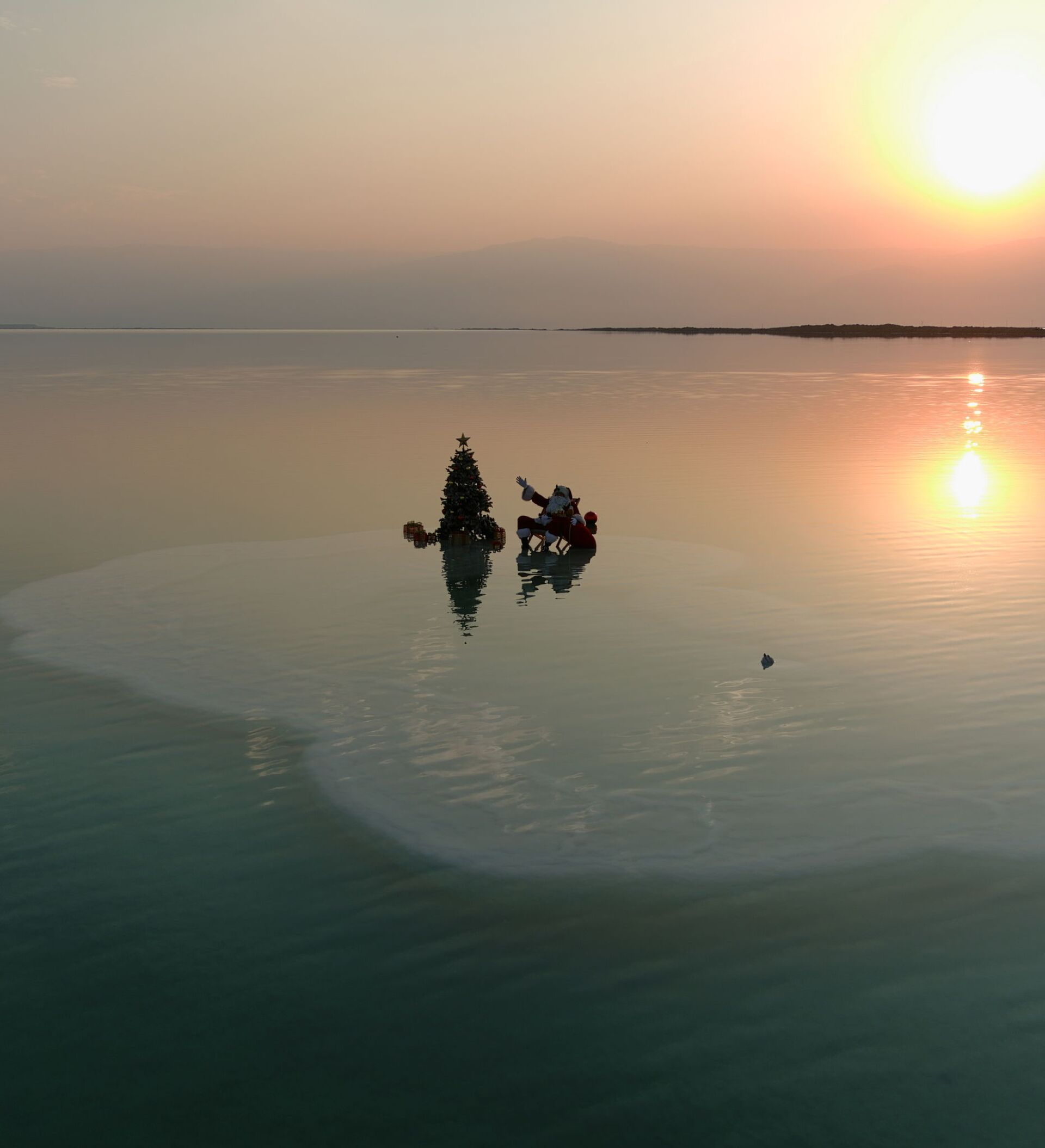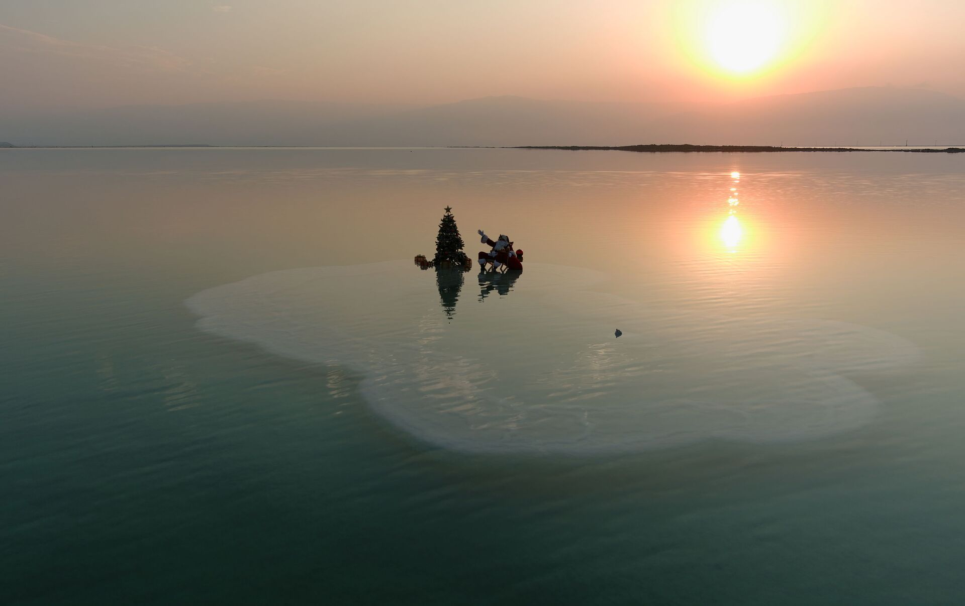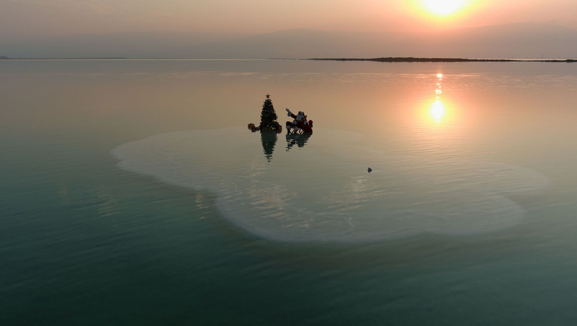 © REUTERS / Ilan Rosenbergالفلسطيني عيسى قسيسية يرتدي زي بابا نويل وشجرة عيد الميلاد، أثناء جلسة تصوير في البحر الميت، في عين بكيك، 15 نوفمبر 2020