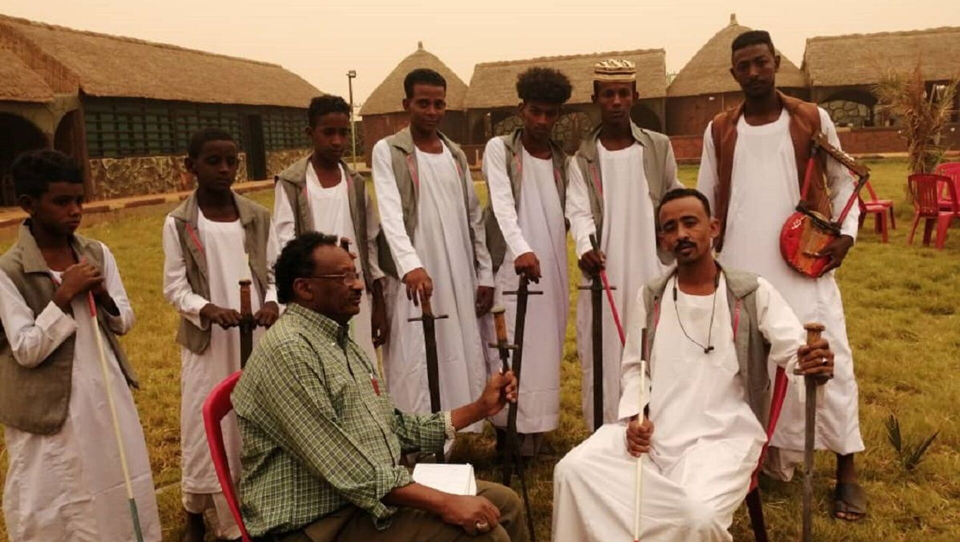 وأكمل، بأن الطفل من خمس سنوات يمكن أن يؤدي العرضة، لكنه لا يستطيع تنفيذ البرنامج، لذا نقوم بتدريبهم في البيوت في المناسبات الخاصة، ولدي طفل عامل يقوم بعمل بعض العروض، والحمد لله الفرقة تقدم عروضا مقبولة لدى كل الشعب السوداني، عندما نمثل قبيلتنا تجد السيف والدرجة والربابة حاضرة، وقد يختلف الأمر بعض الشىء عندما نمثلها في الوطن العربي.