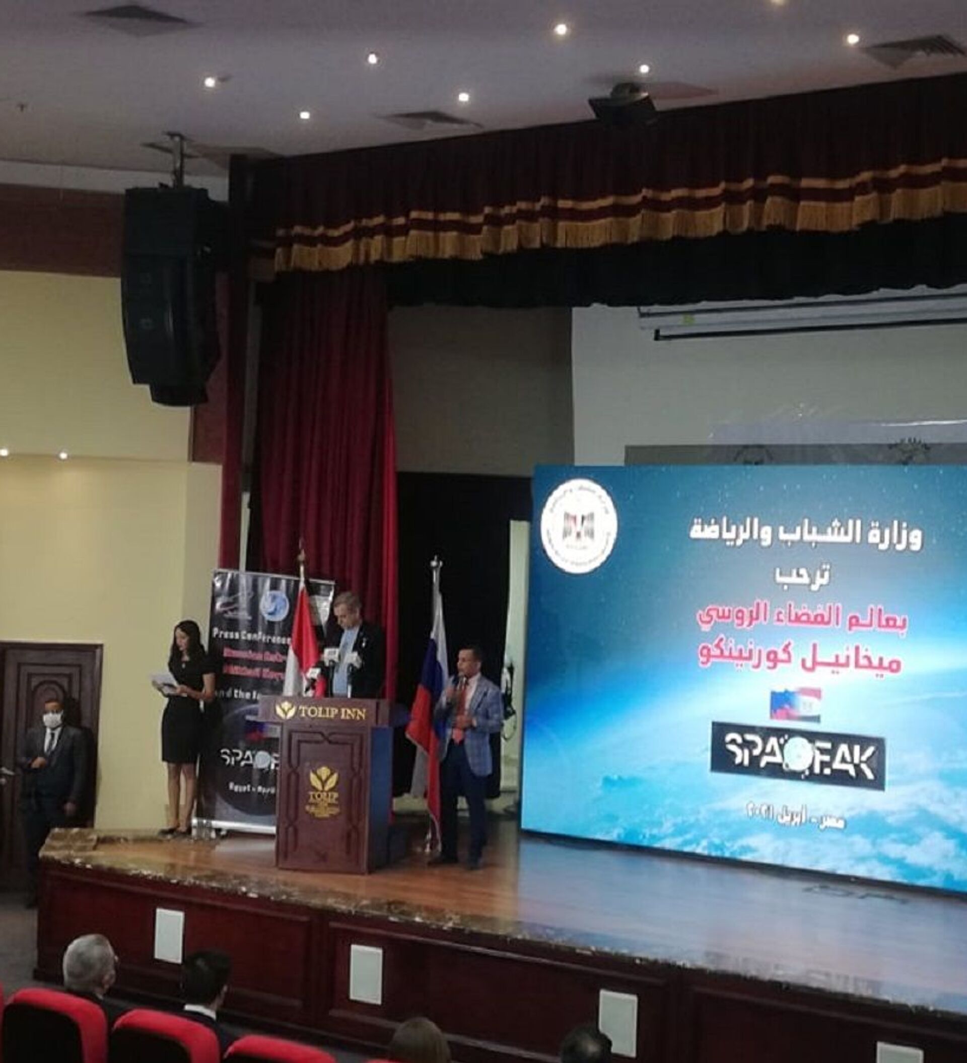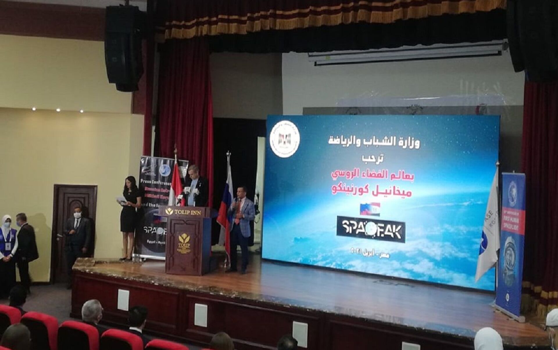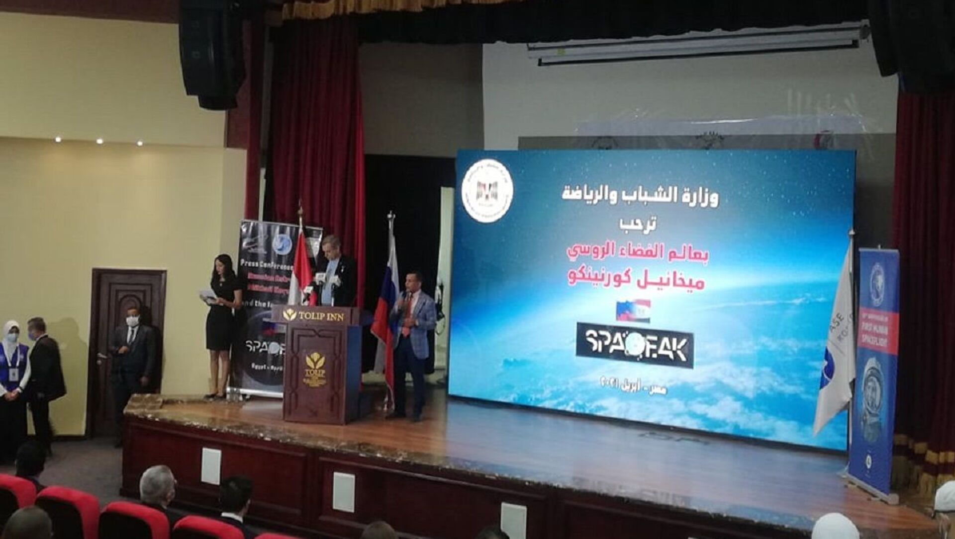 انطلقت الاحتفالية، اليوم الثلاثاء، بحضور وزير الشباب والرياضة أشرف صبحي، وسفير روسيا جيورجي بوريسينكو، ورائد الفضاء الروسي ميخائيل كورنيينكو، وممثلي وكالة الفضاء المصرية.