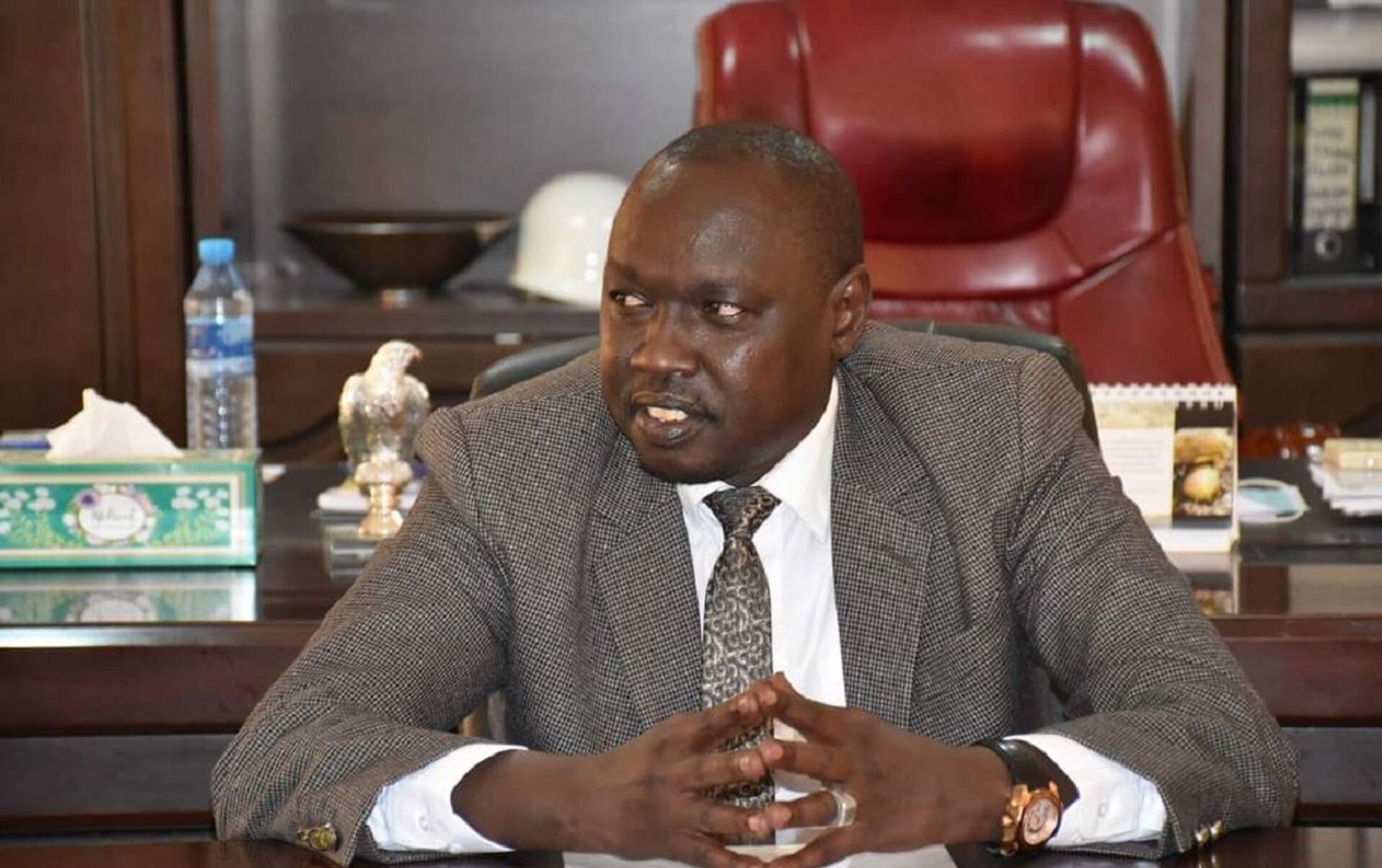 وأكد الوزير في مقابلته مع وكالة"سبوتنيك"، أن بلاده على استعداد للعب دور الوساطة تحت مظلة الاتحاد الأفريقي، مشيرا إلى أن كل الأطراف أبدت استعدادها لتقديم تنازلات من أجل الحل السلمي، وأن جوبا تستكشف كل الآراء الآن قبل التقدم بمقترح رسمي للحل.