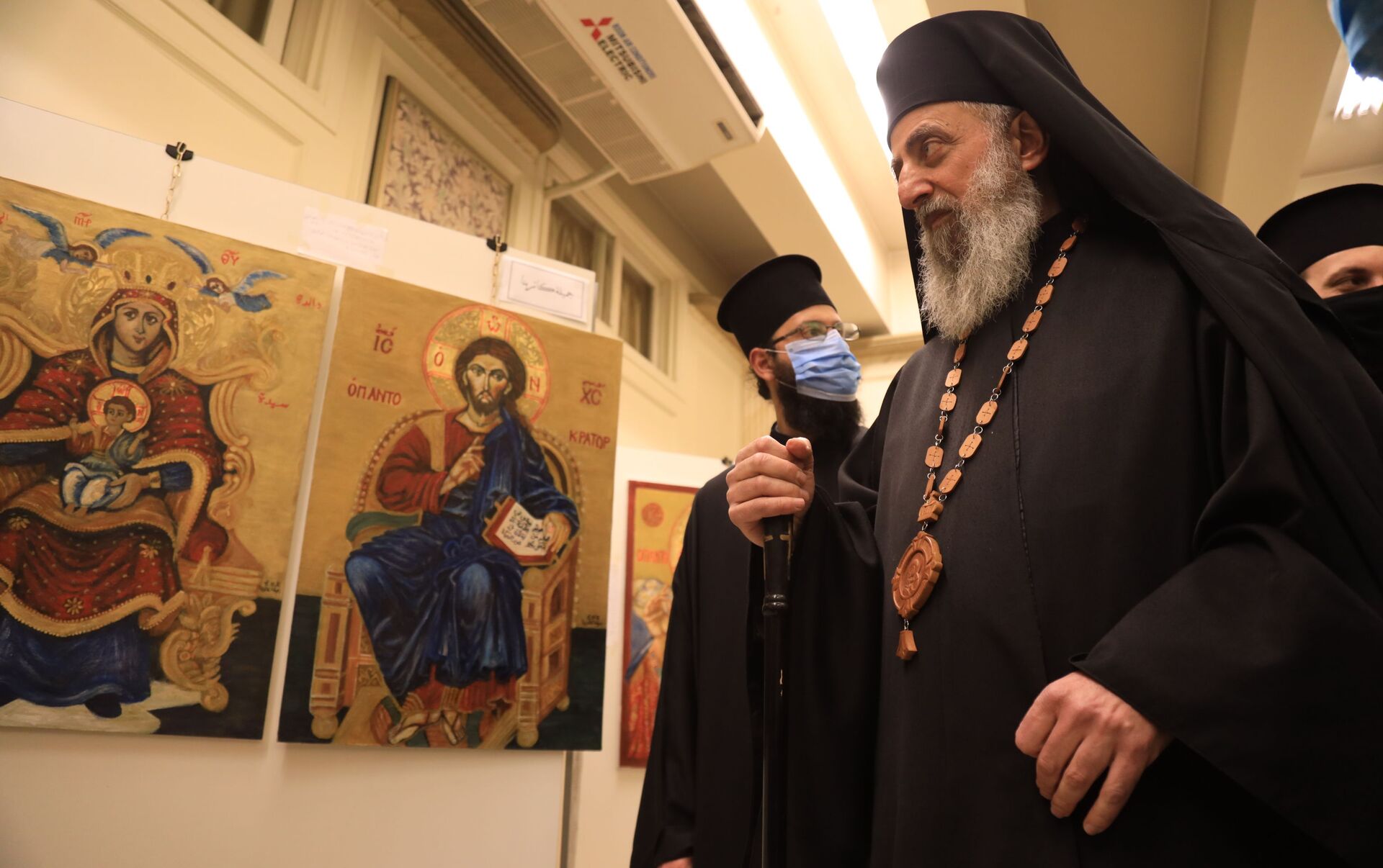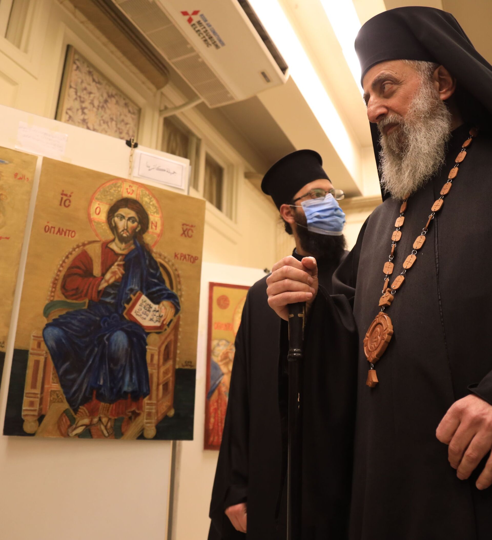 افتتاح معرض الأيقونة الثاني في قاعات الصليب المقدس في دمشق، سوريا 9 أبريل 2021