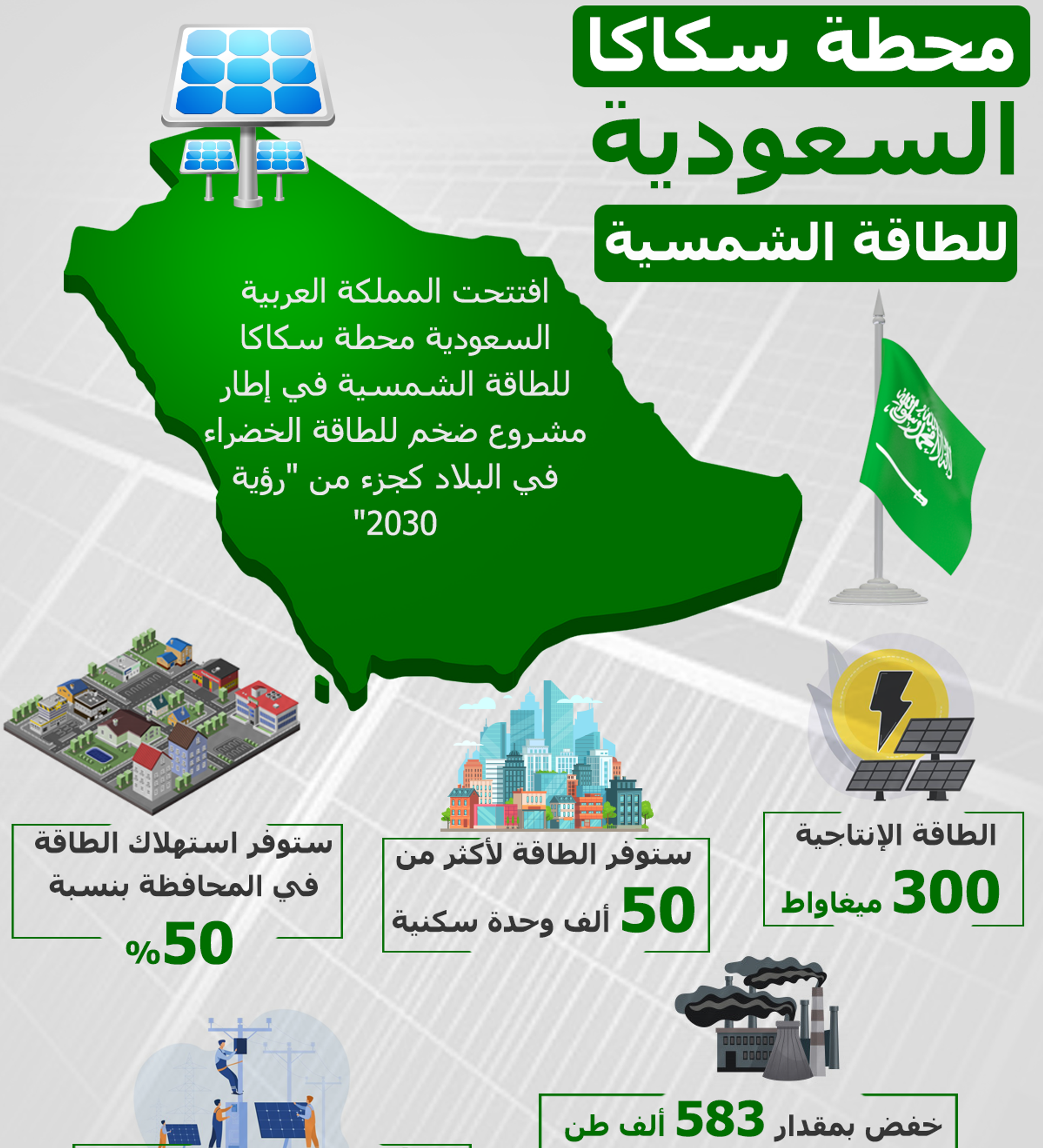 افتتحت المملكة العربية السعودية محطة سكاكا للطاقة الشمسية في إطار مشروع ضخم للطاقة الخضراء في البلاد كجزء من "رؤية 2030"، هنا نتعرف على تفاصيل هذا المشروع.