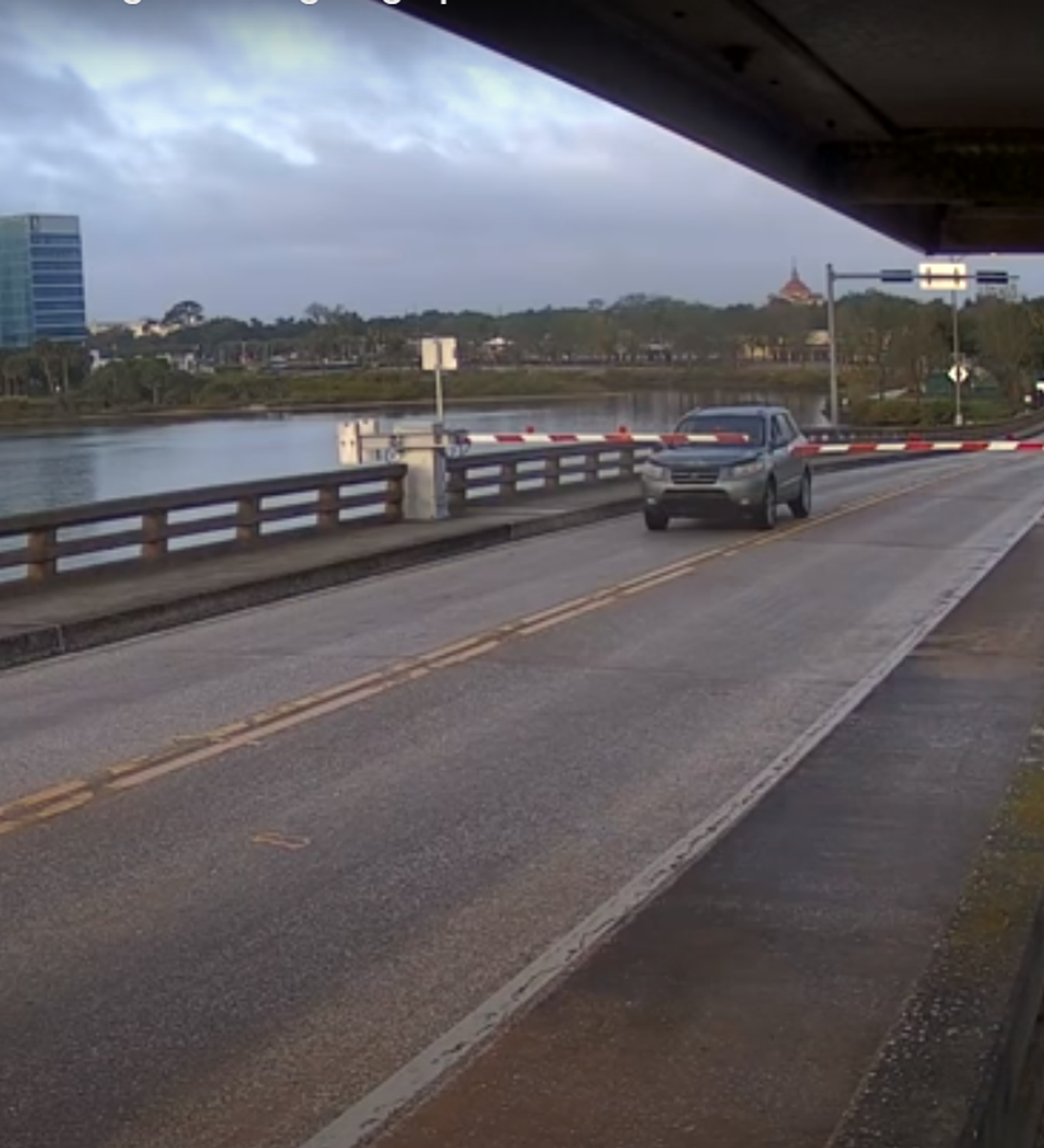 ورصدت كاميرات المراقبة السائق وهو يقود بسرعة ويحطم الحاجز الذي يمنع السيارات من العبور أثناء فتح الجسر المتحرك.