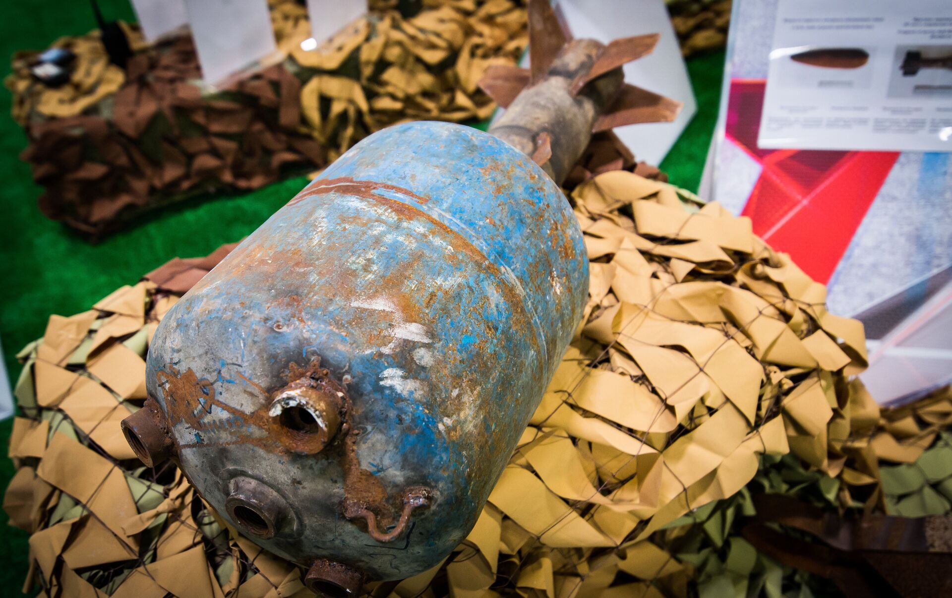 لغم مصنوع من أنبوبة غاز في معرض الأسلحة التي تم حجزها من المسلحين في سوريا، كجزء من المنتدى الفني العسكري الدولي الرابع أرمي 2018 (الجيش 2018) في كوبينكا - سبوتنيك عربي, 1920, 22.04.2021