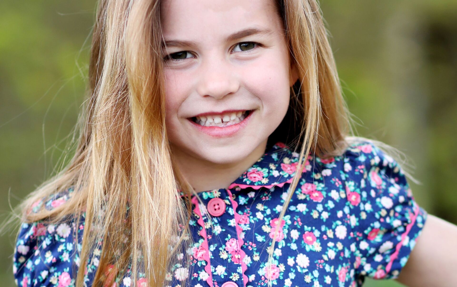 وظهرت الأميرة شارلوت في الصورة الجديدة وهي ترتدي فستانا صيفيا مزين بالزهور الوردية.