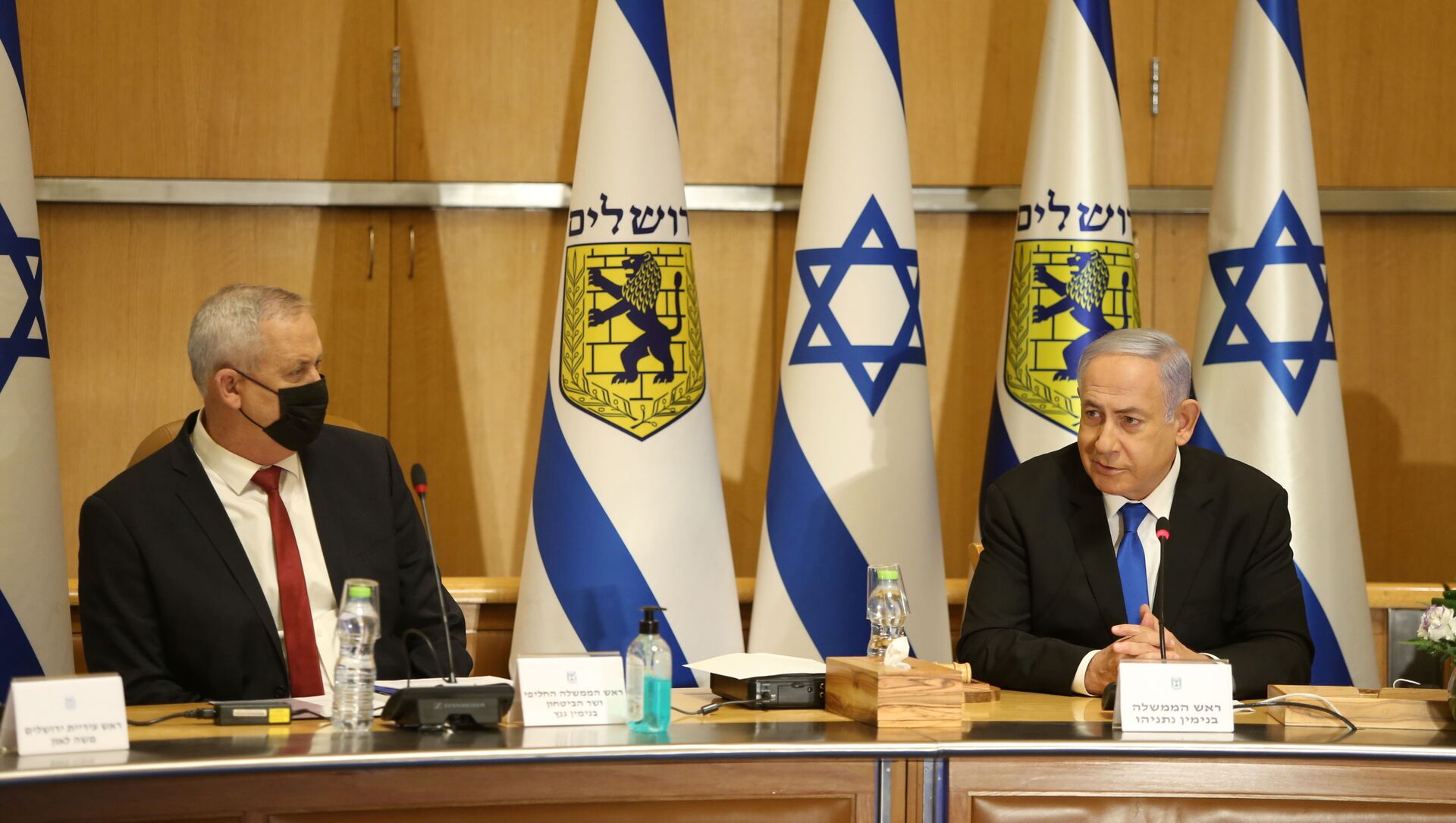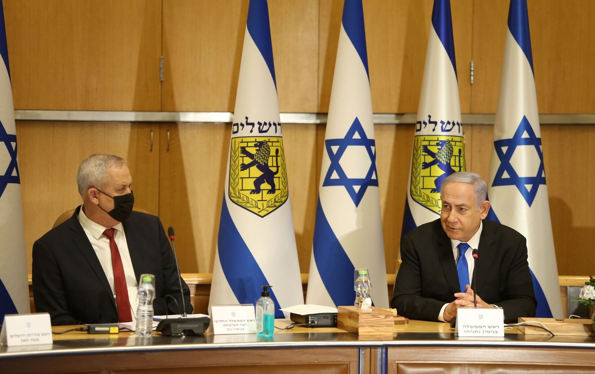 رئيس الوزراء الإسرائيلي بنيامين نتنياهو، ووزير الدفاع الإسرائيلي بيني غانتس، القدس 9 مايو 2021 - سبوتنيك عربي, 1920, 16.05.2021