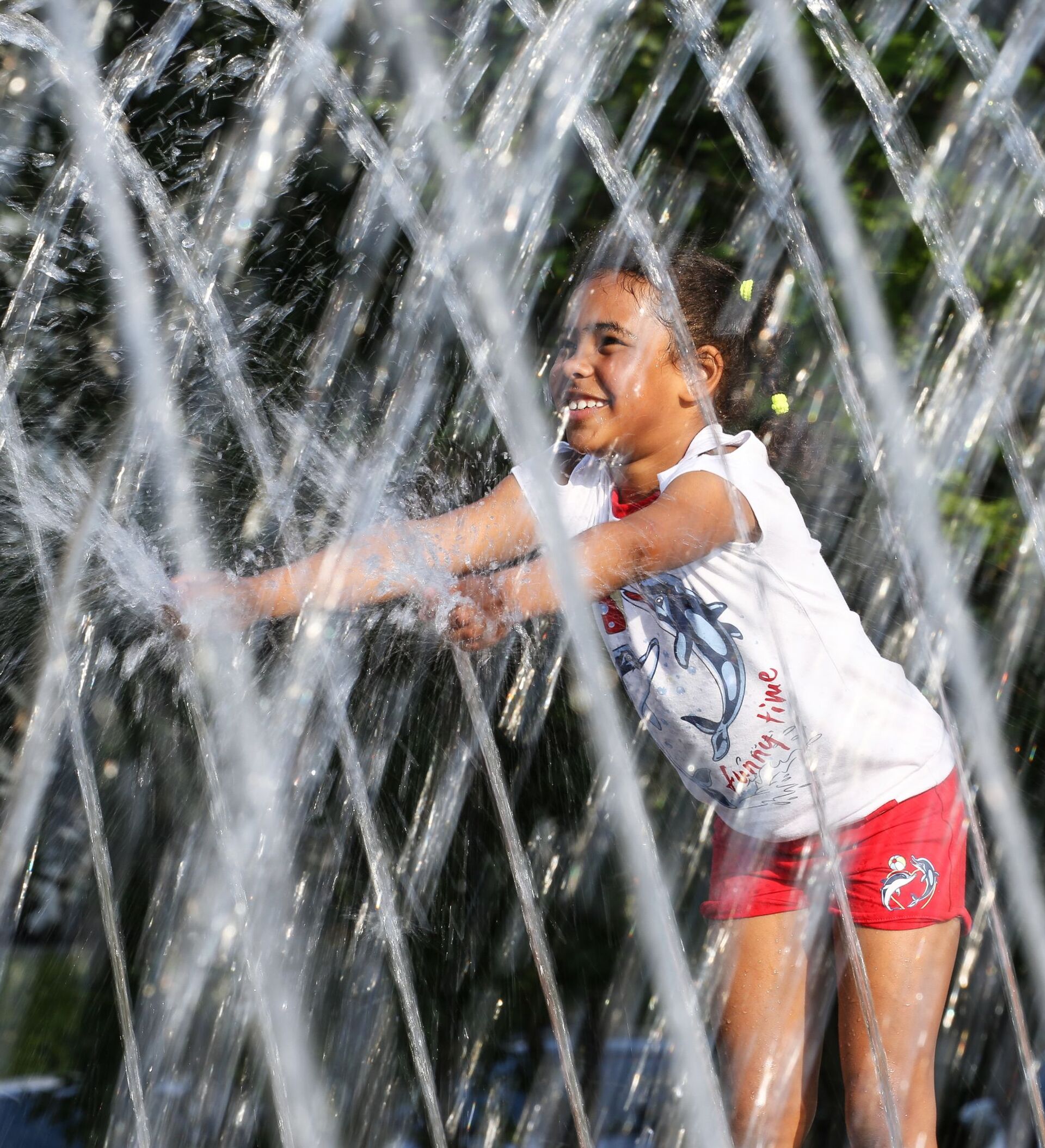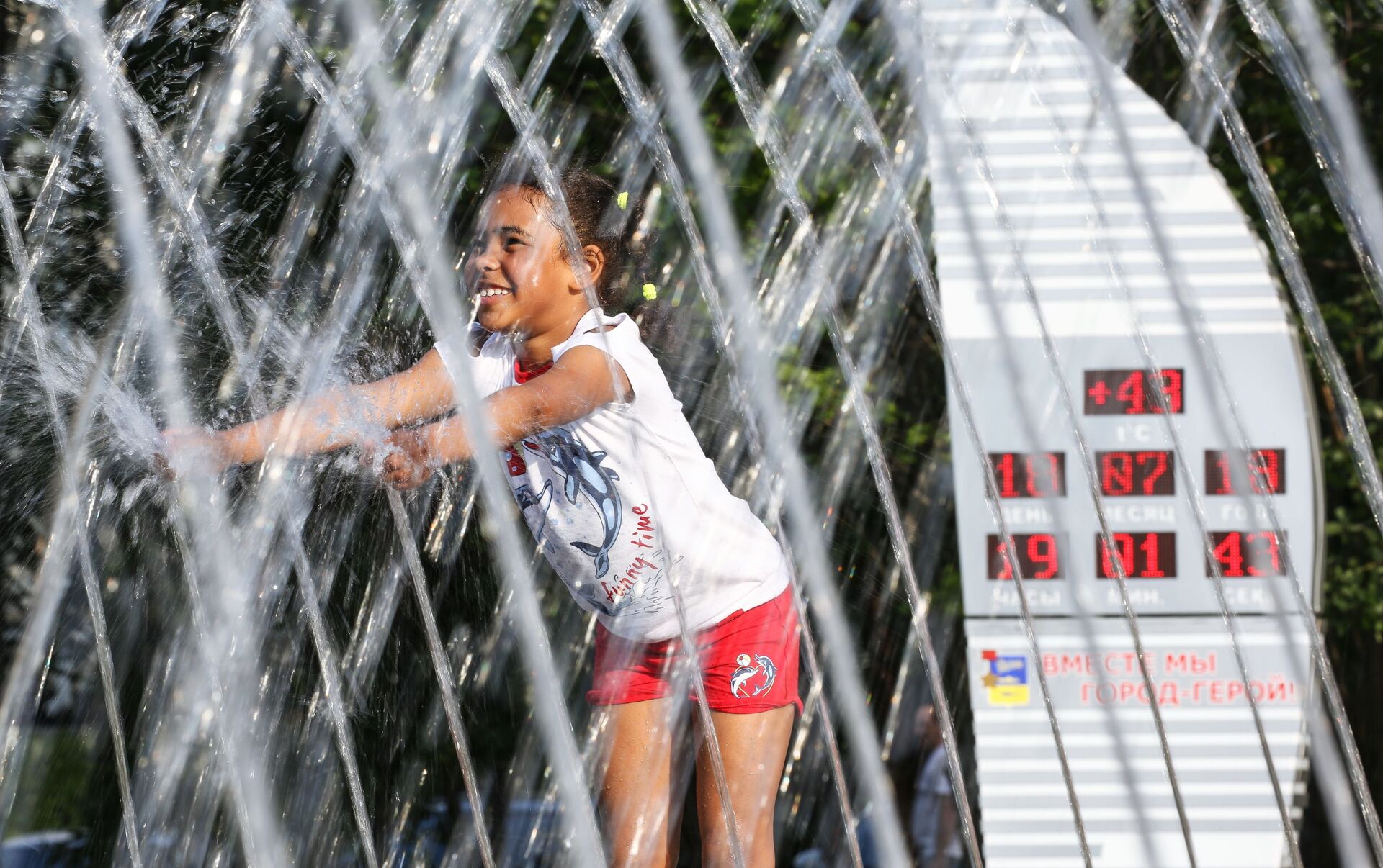 فتاة تلعب بمياه نافورة خمس زوايا في مدينة مورمانسك الروسية - سبوتنيك عربي, 1920, 24.06.2021