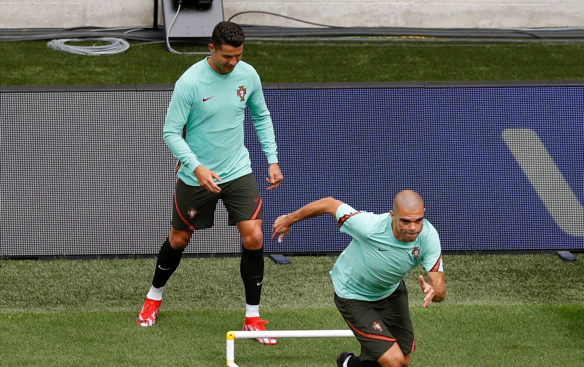 © REUTERS / LASZLO BALOGHكريستيانو رونالدو وبيبي خلال تدريباتهما مع المنتخب البرتغالي في يورو 2020