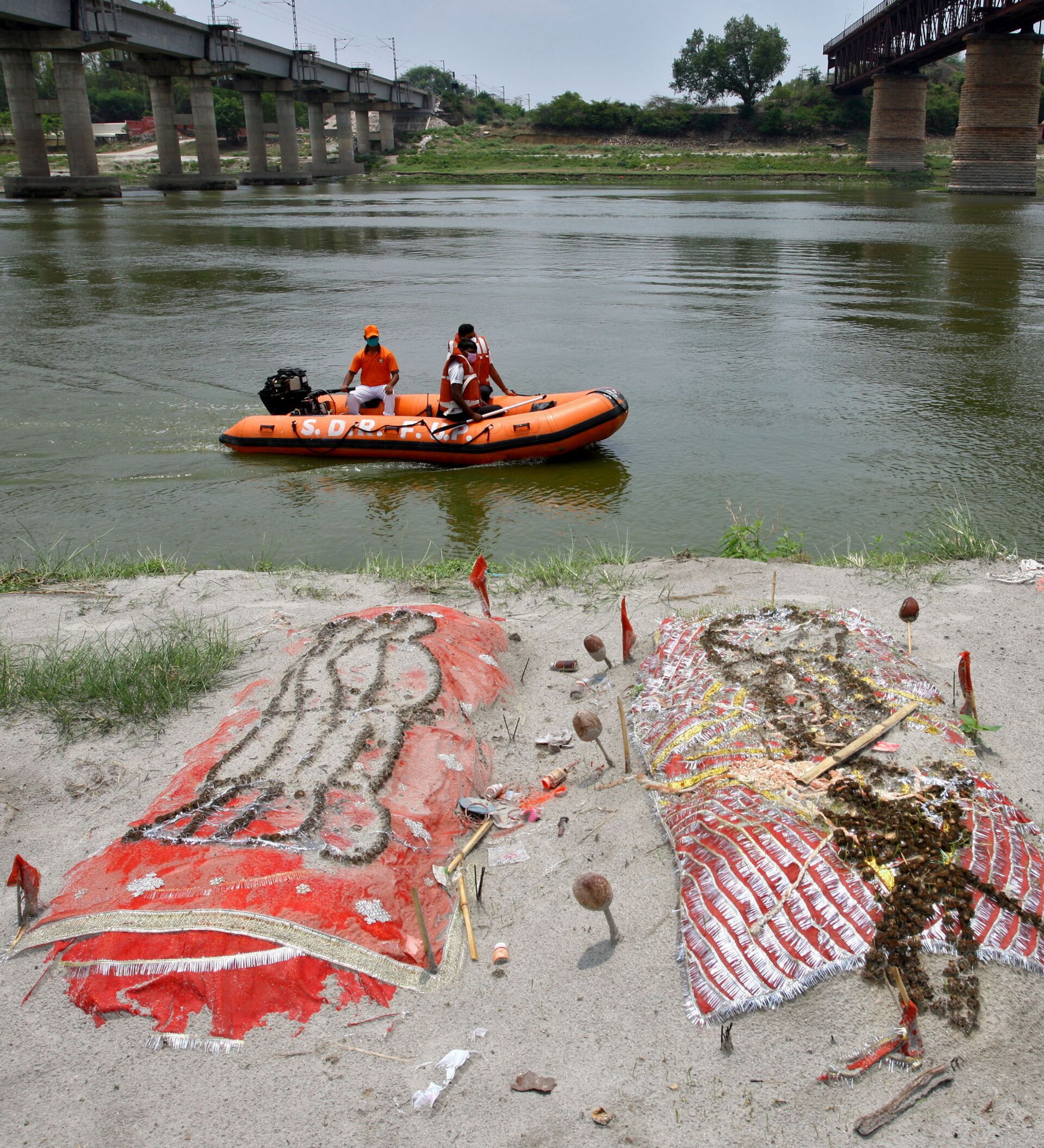 ووفقاً للمسؤولين المحليين فإنه تم دفن نحو 600 جثة على طول النهر المقدس خلال تصاعد الجائحة، لكن السكان المحليين يعتقدون أن هذا العدد أقل من العدد الحقيقي، ويخشون من احتمال إزاحة المزيد من الجثث بفعل المياه السريعة.