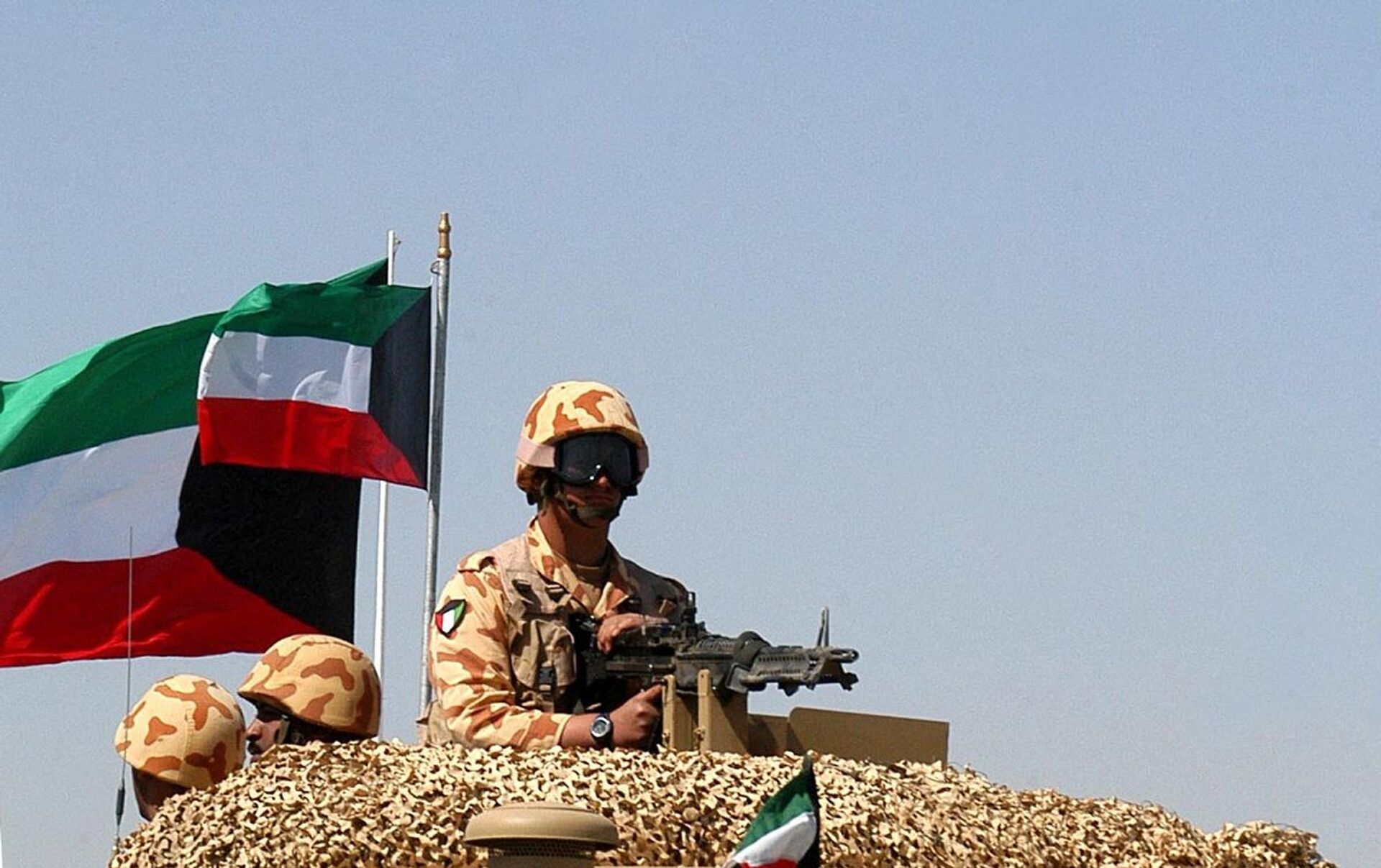 جندي كويتي على متن مركبة عسكرية أثناء تحليق طائرات حربية مشاركة في تدريب عسكري - سبوتنيك عربي, 1920, 01.07.2021