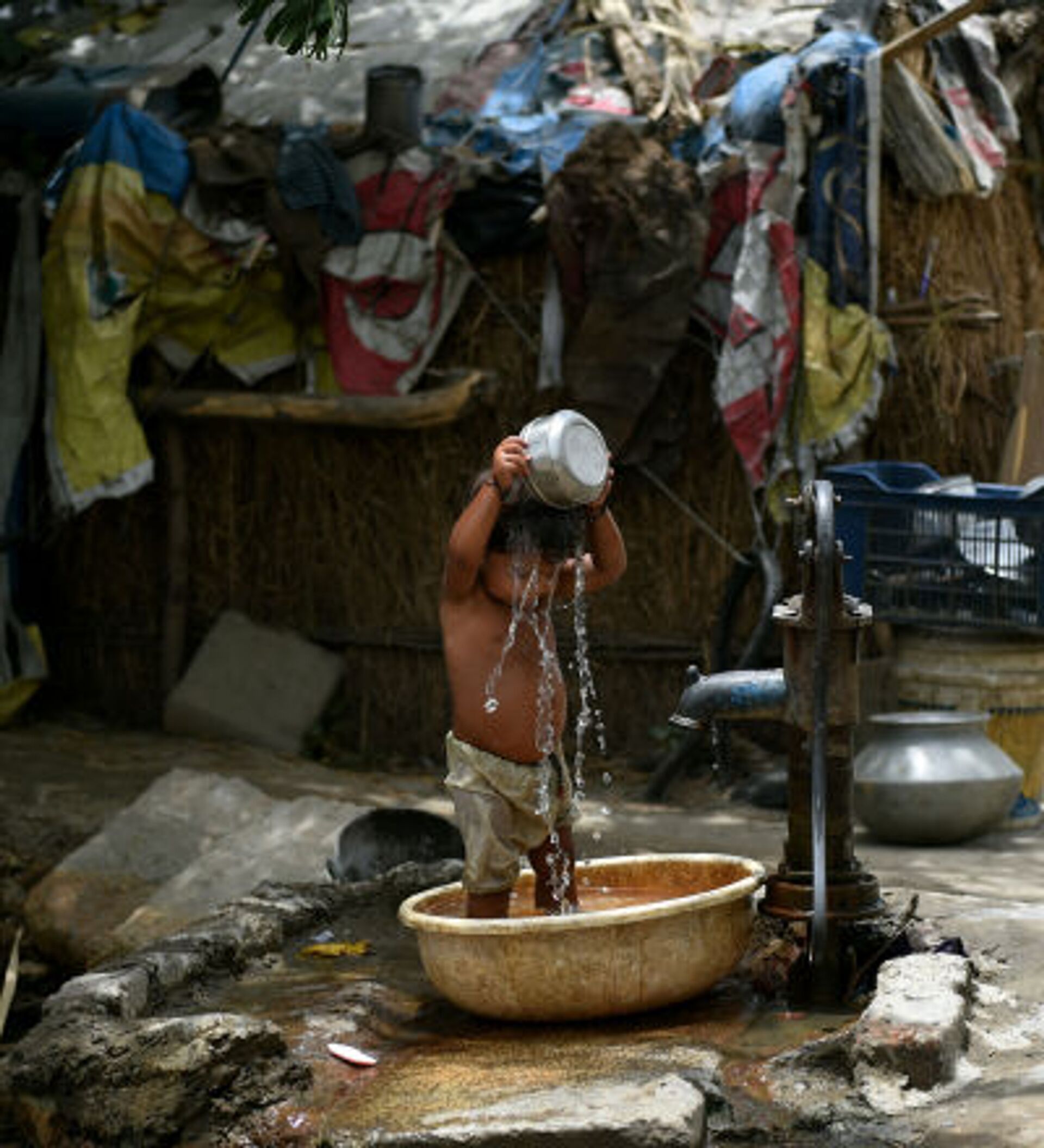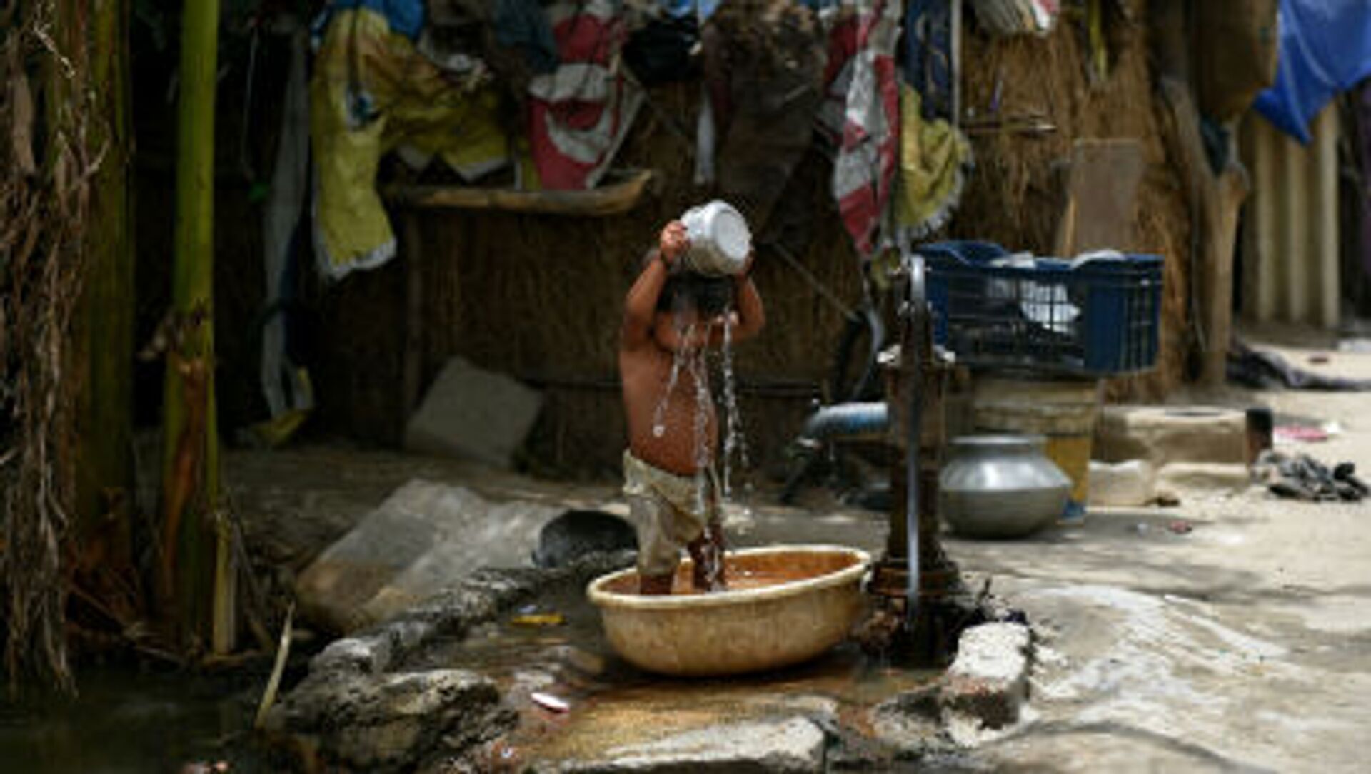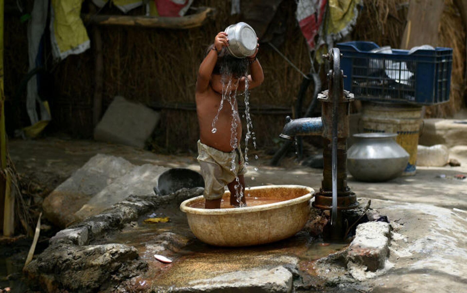 طفل هندي يصب على نفسه الماء هربا من الحر - سبوتنيك عربي, 1920, 03.07.2021