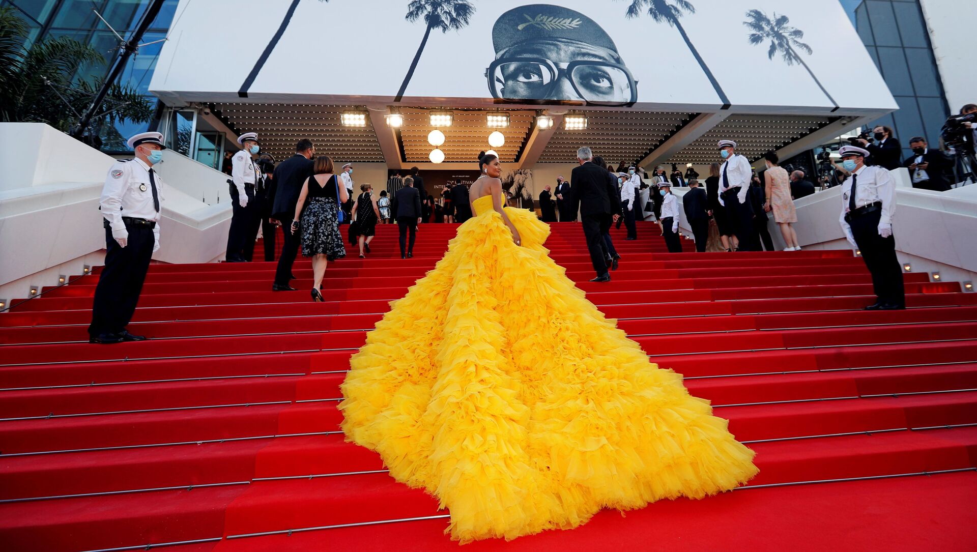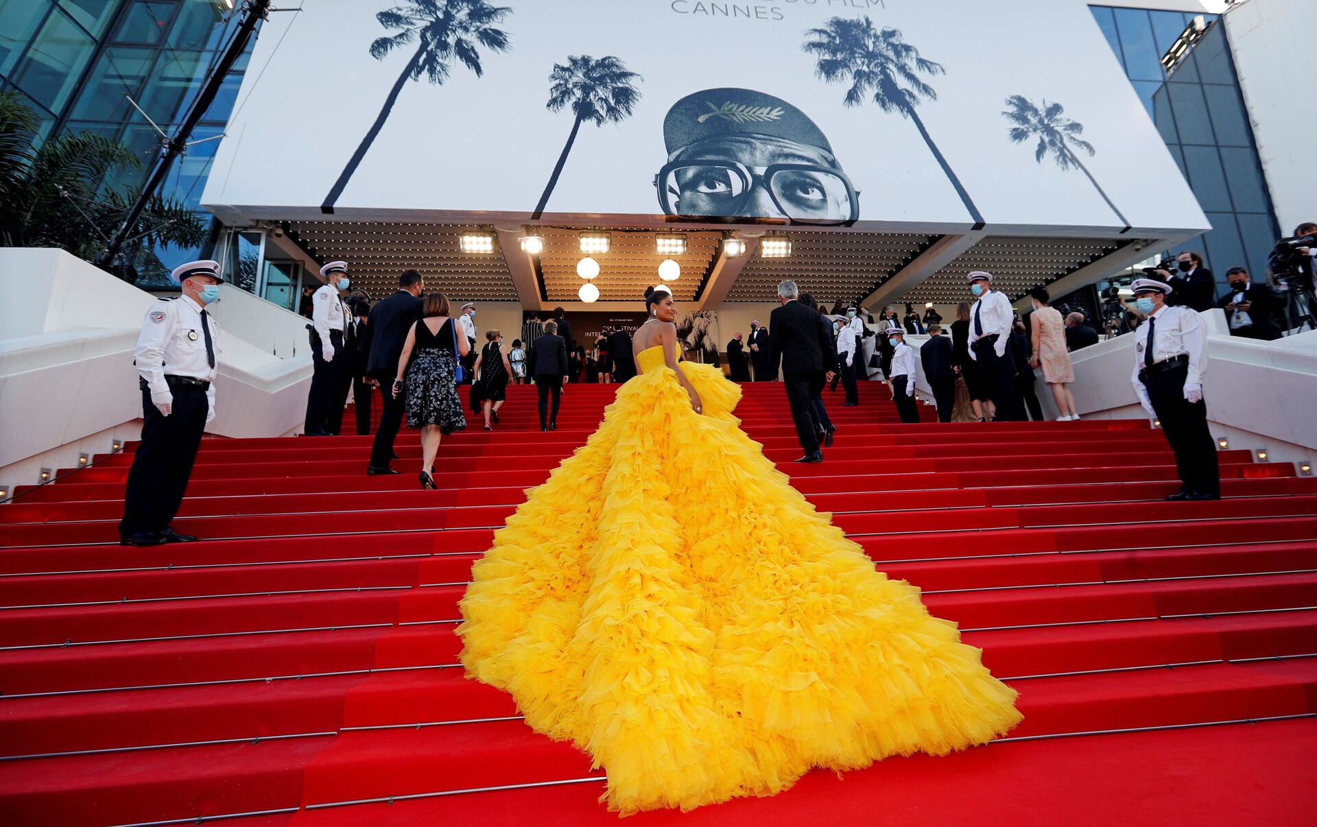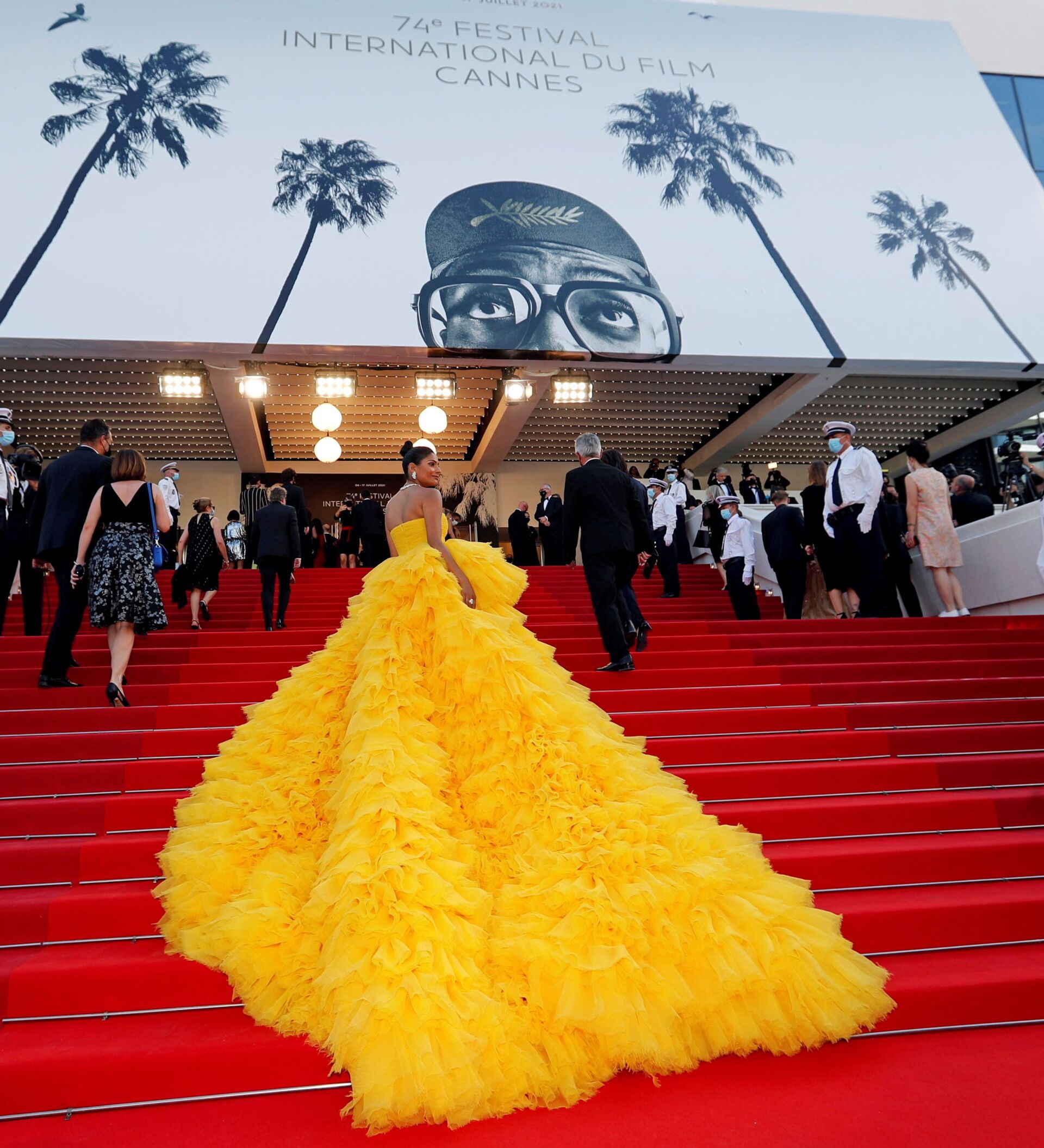 وصول المدونة الهندية فرهانا بودي (فرحانة بودي) إلى السجادة الحمراء لحضور العرض الأول بفيلم "آنيت"، في إطار افتتاح مهرجان كان السينمائي بنسخته الـ74، 6 يوليو 2021
