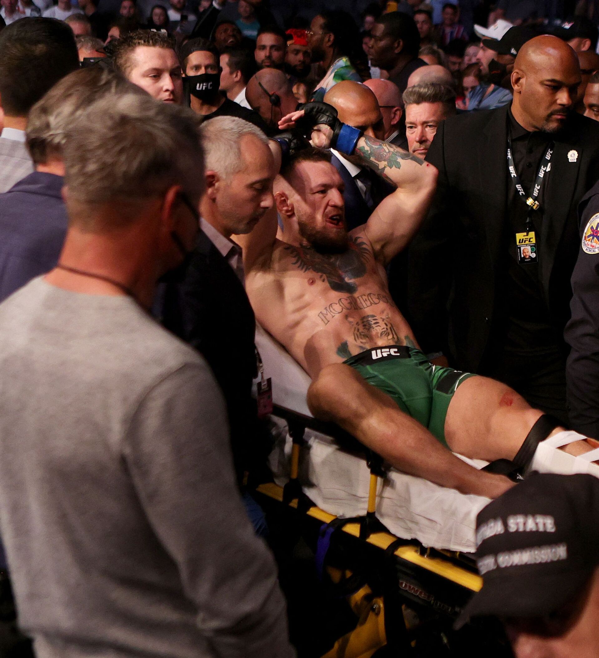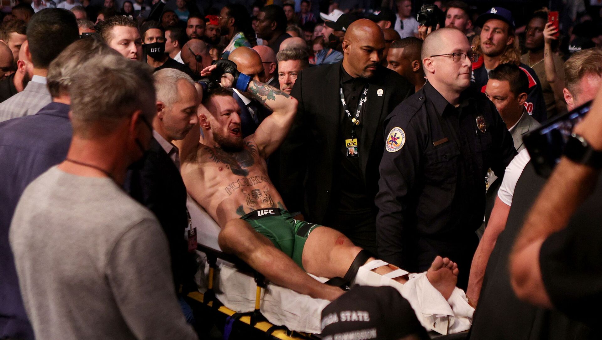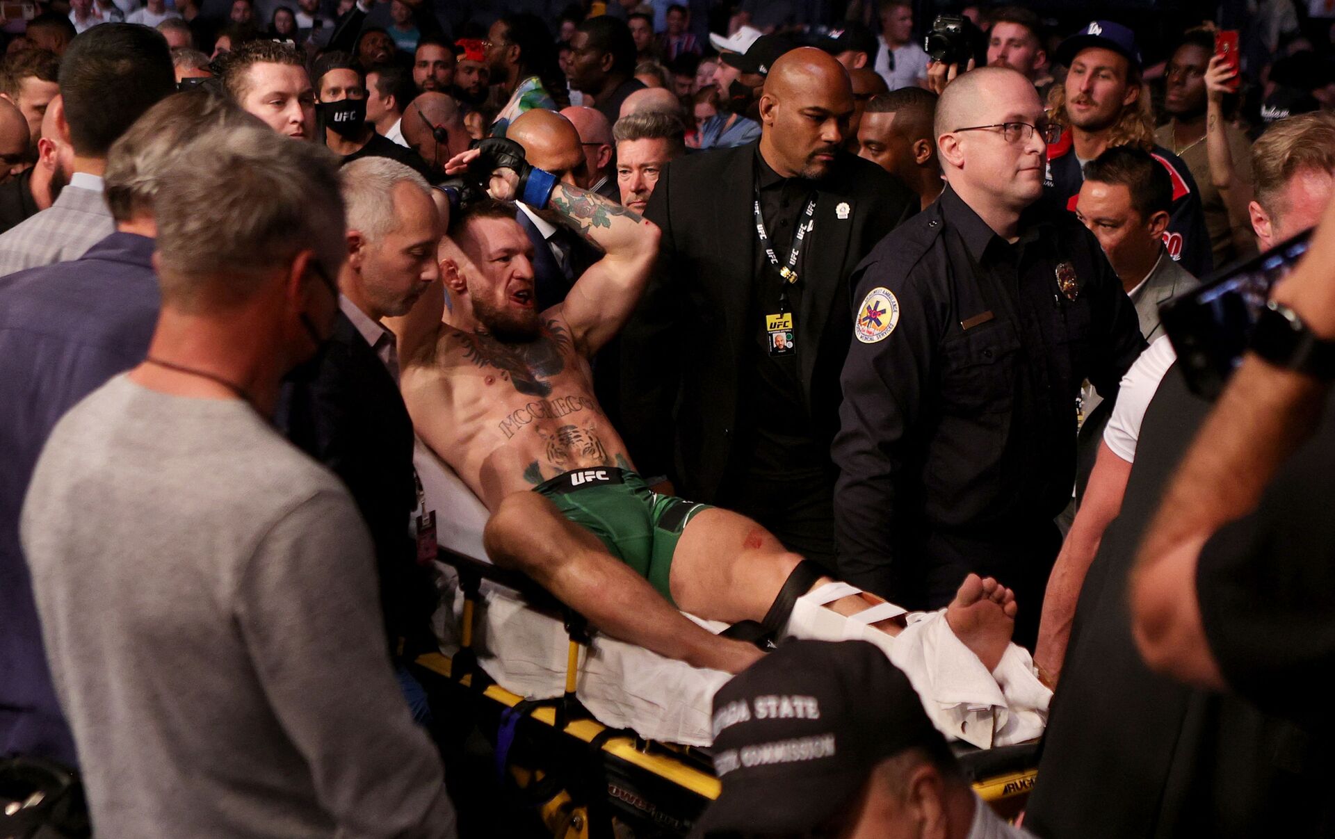 وصرح رئيس الرابطة، دانا وايت، بأنه يشعر بخيبة أمل من الطريقة التي انتهت بها المعركة الرئيسية في عرضه، متمنيا الشفاء العاجل للإيرلندي.