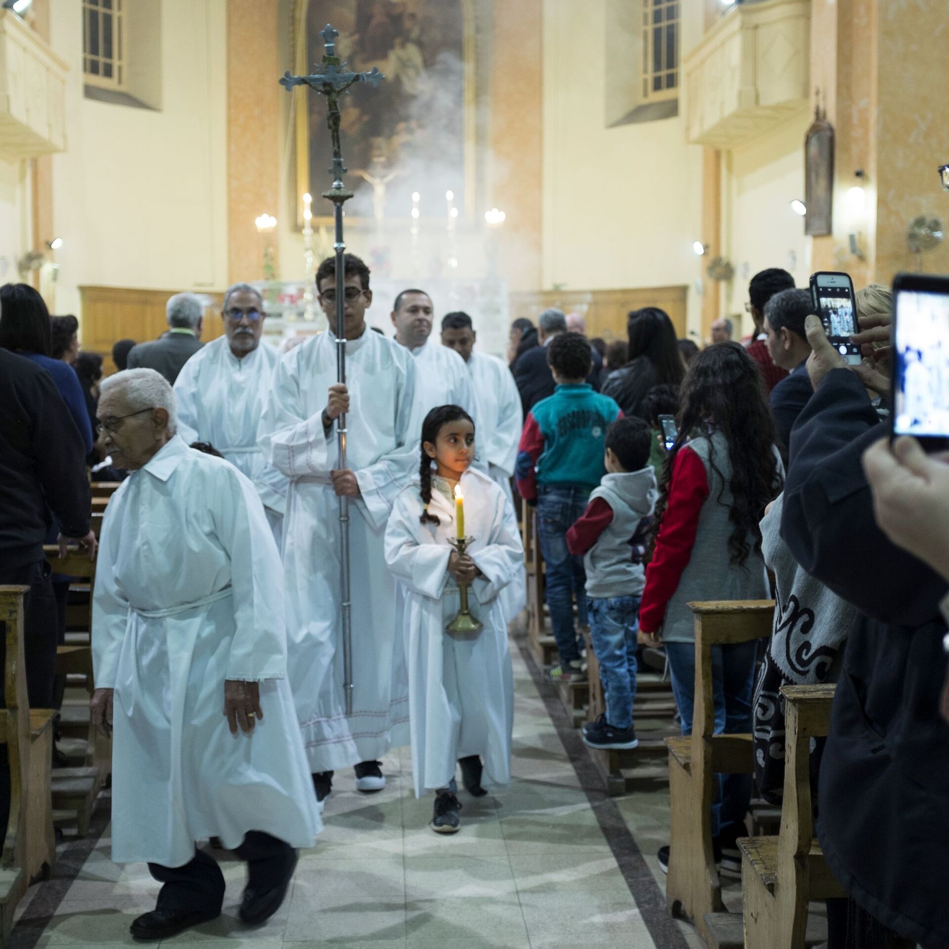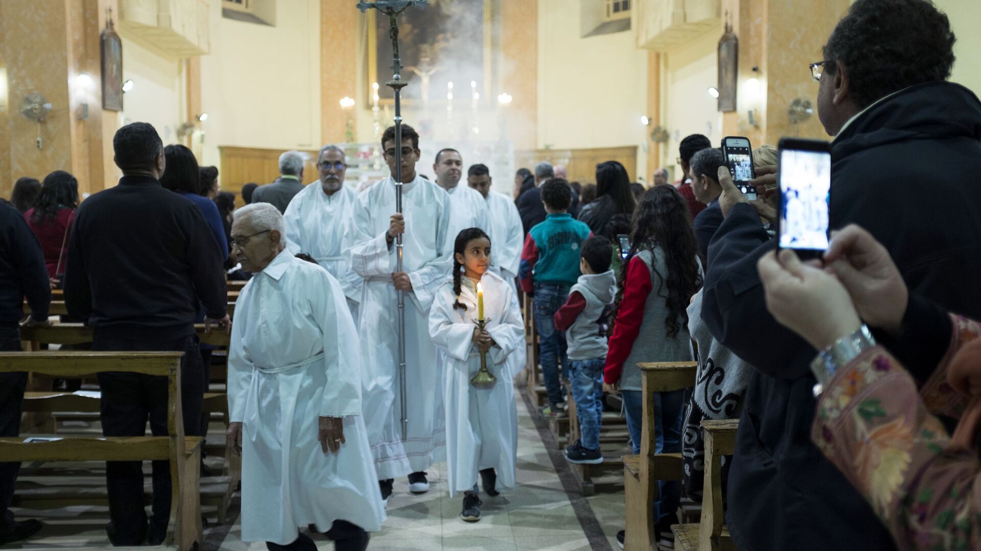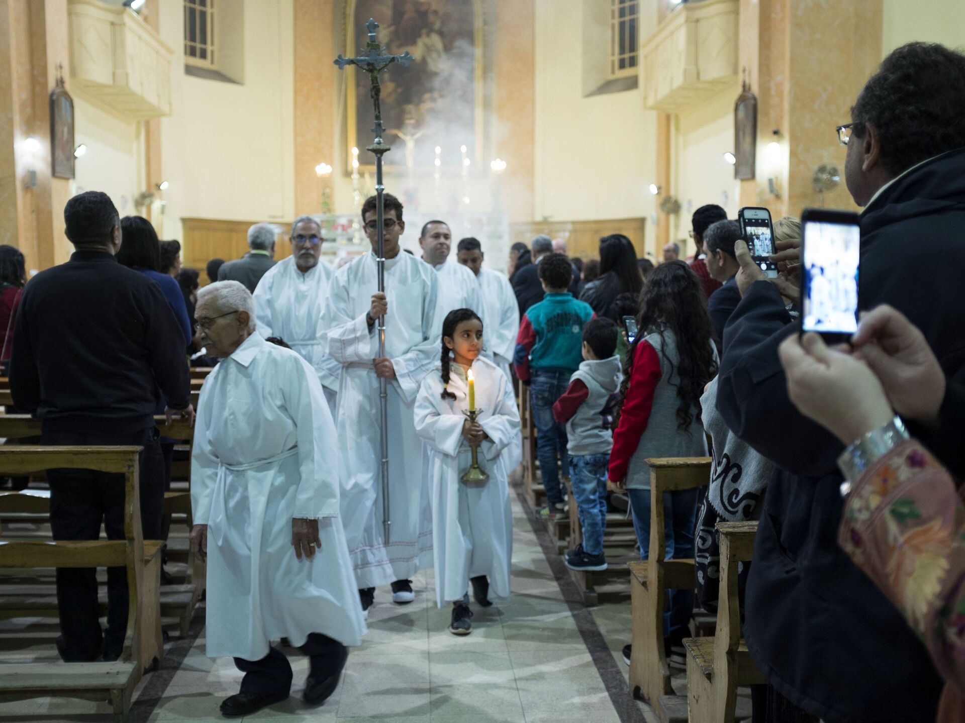 © Sputnik . Хsenya Nikolskayaاحتفالات بعيد الميلاد المجيد في كنيسة "القديس جوزيف" الكاثوليكية الرومانية في القاهرة، مصر 24 ديسمبر/ كانون الأول 2017