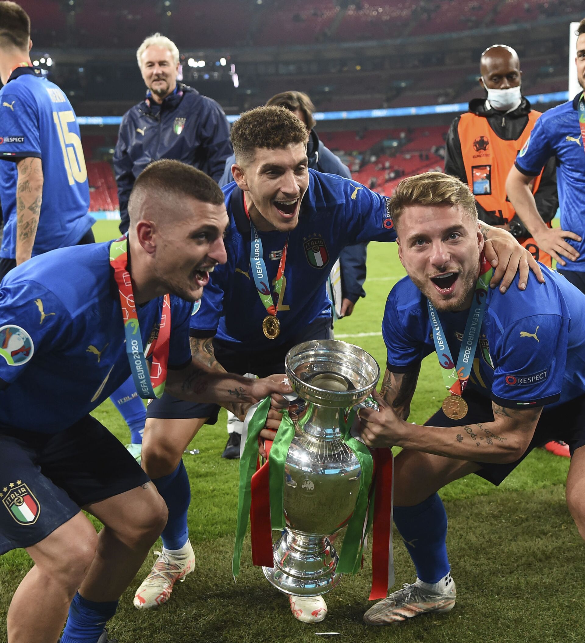 وانتصرت إيطاليا بفضل ركلات الترجيح على إنكلترا (3-2) عقب انتهاء الوقتين الأصلي والإضافي بالتعادل الإيجابي 1-1.