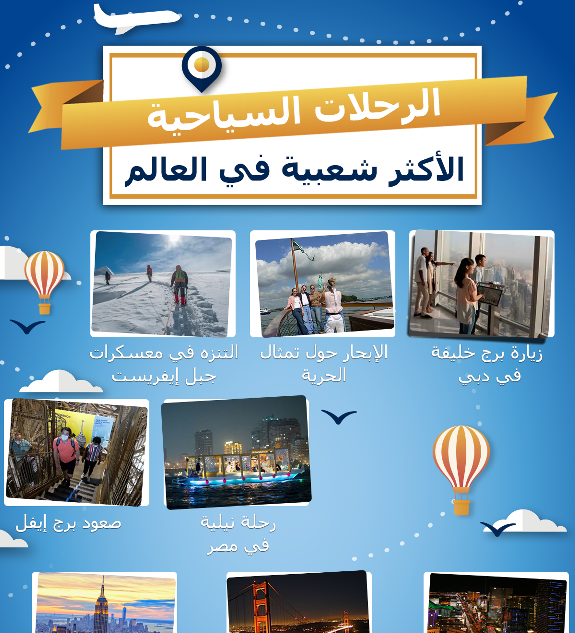 وفقا للدراسة، التي حللت عمليات البحث في الفترة من مايو/ أيار 2020 إلى مايو 2021، كان برج خليفة، أطول مبنى في العالم، هو الأكثر بحثا بين تجارب السفر، وهي النتيجة التي فاجأت فريق الدراسة.