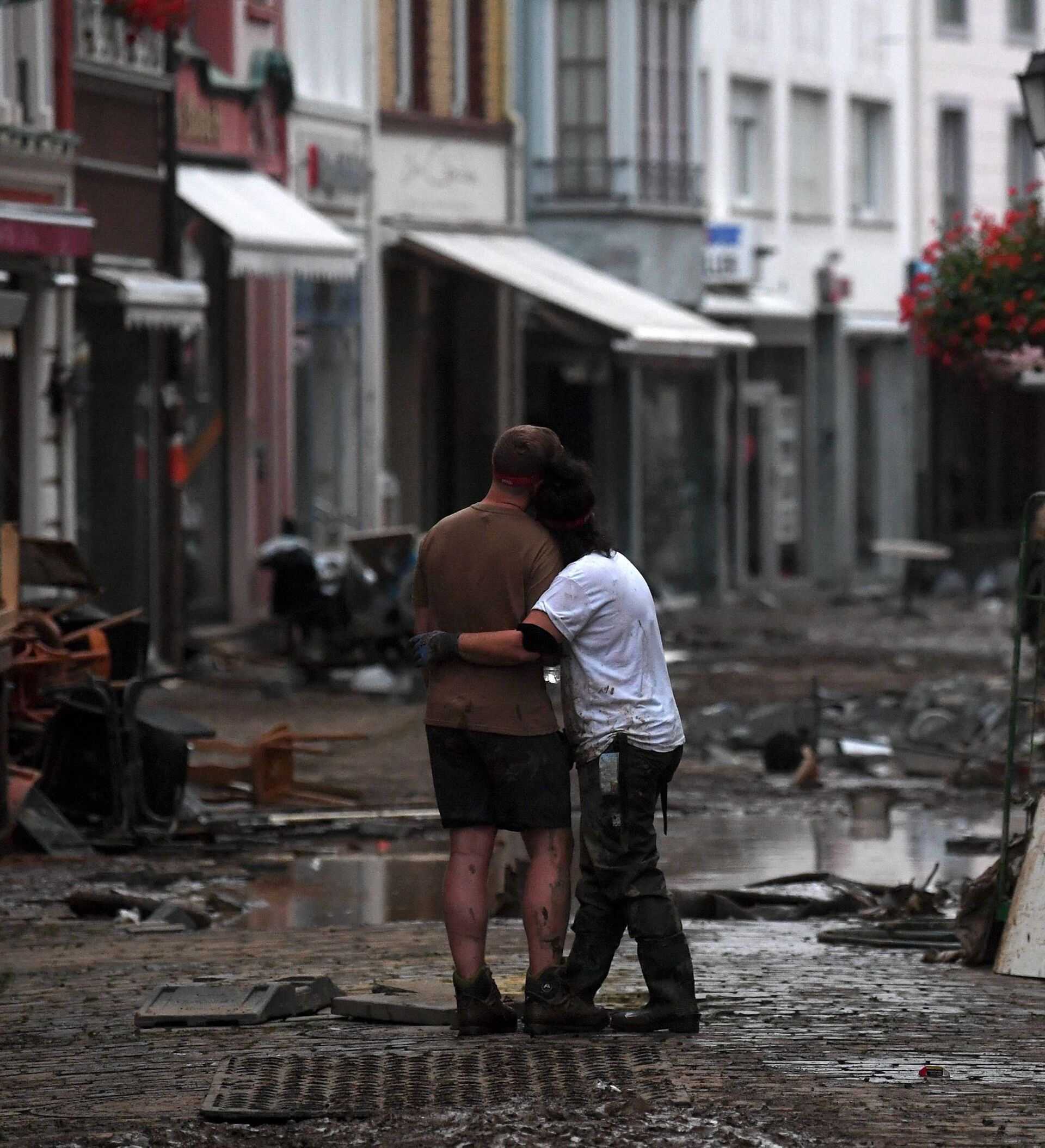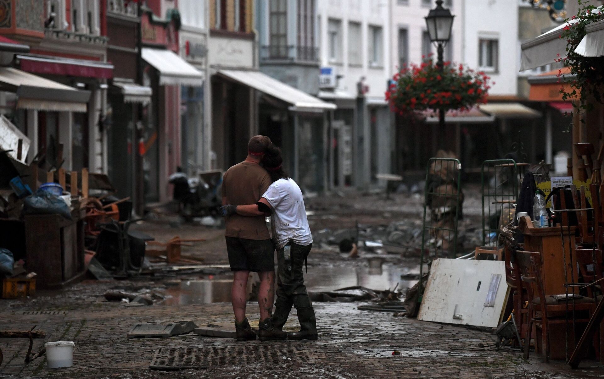 ووقع أسوأ فيضان في ولايتي راينلاند بالاتينات ونورد راين فيستفالن الألمانيتين، حيث جرفت المياه المباني والسيارات.