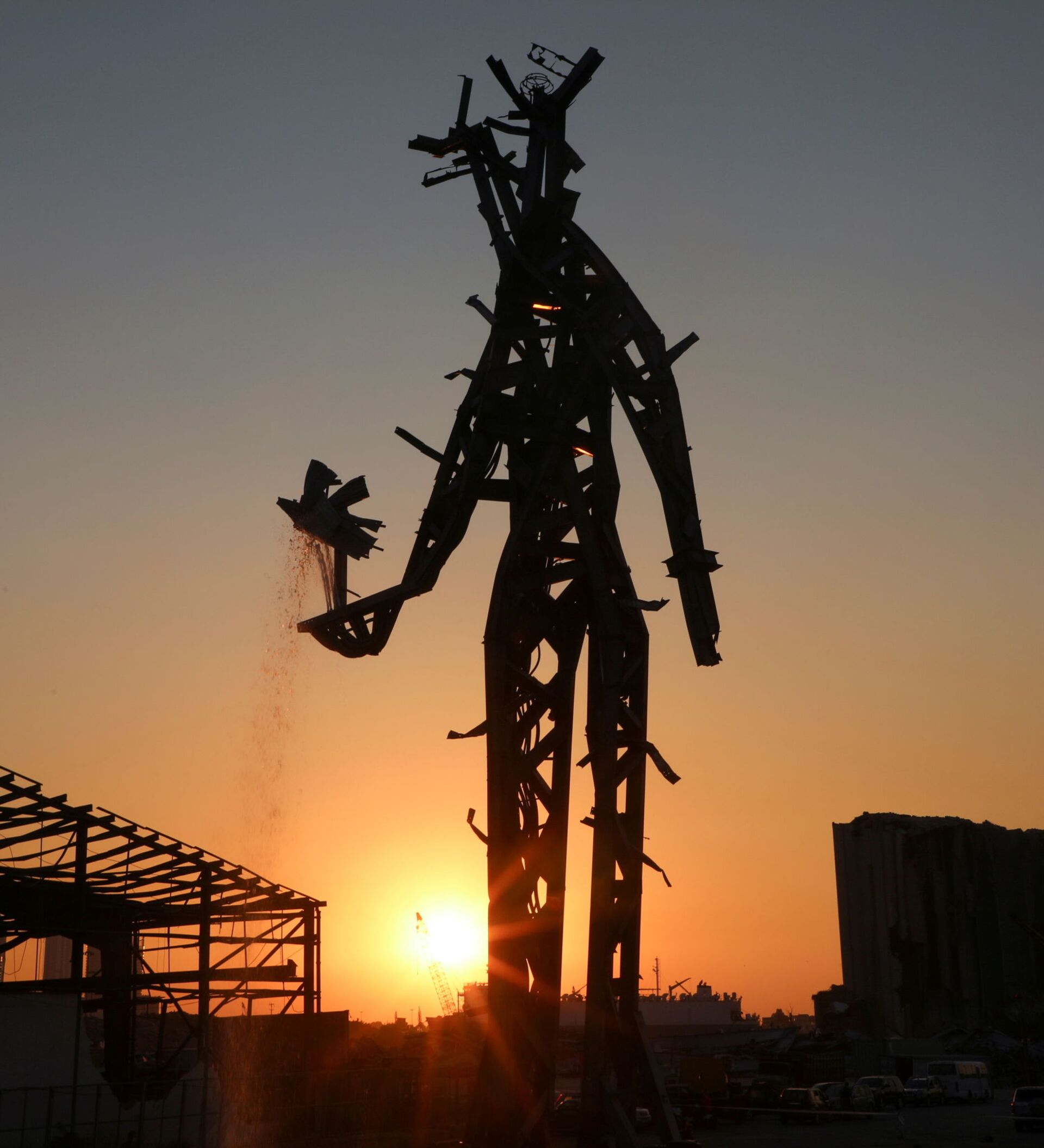 مارد من رماد نصب تذكاري ضخم مصنوع من حطام الانفجار الذي وقع في مرفأ بيروت الصيف الماضي