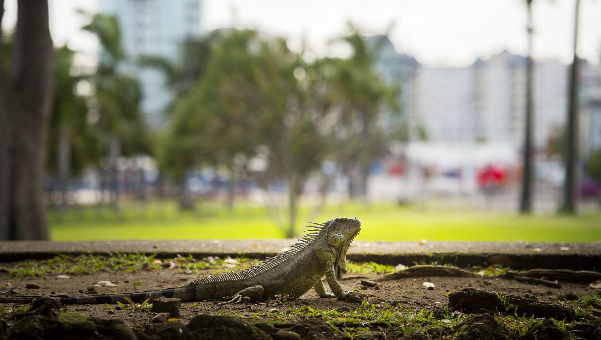 © REUTERS / LIONEL CHAMOISEAUحيوان الإغوانا الزاحف
