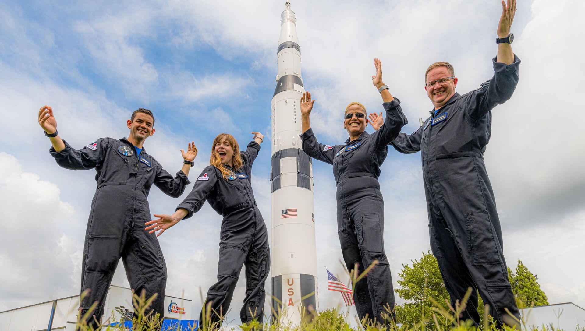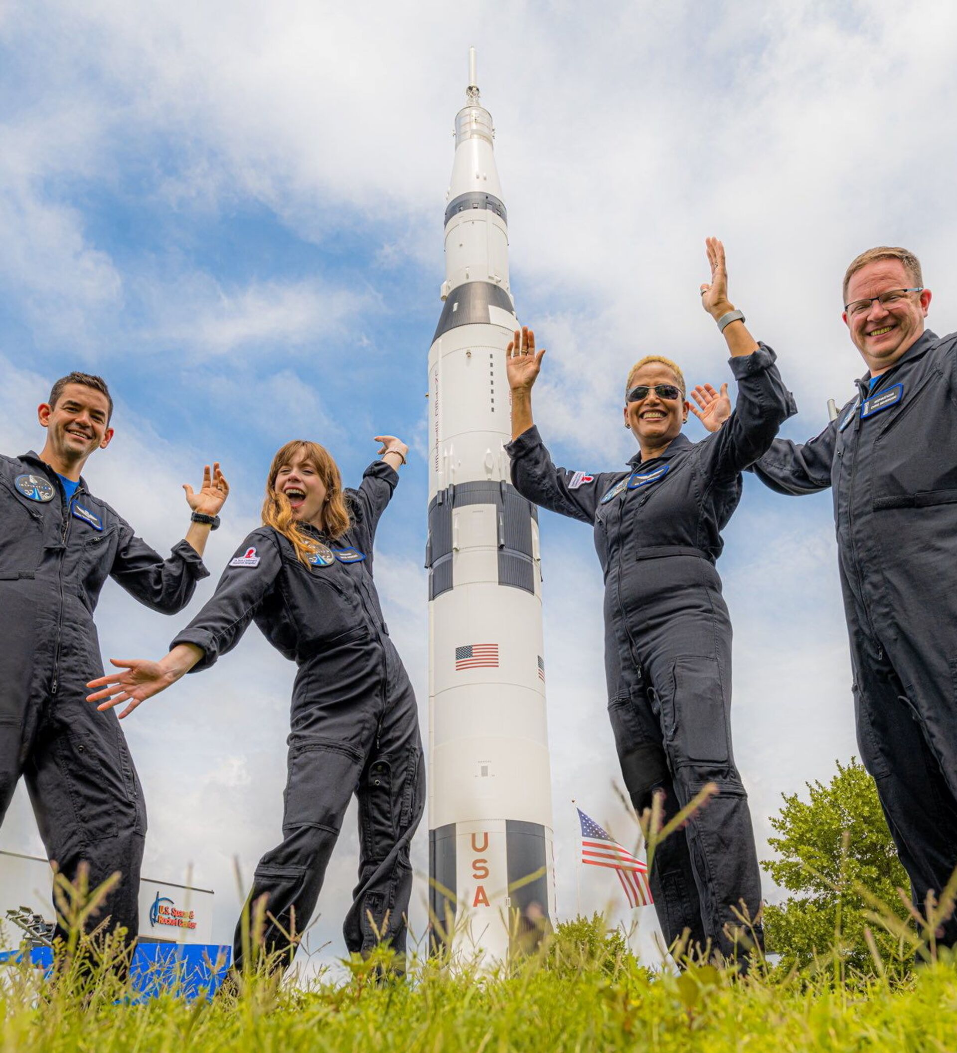 طاقم "Inspiration4" المكون من كريس سيمبروسكي وسيان بروكتور وجاريد إيزاكمان وهايلي أرسينو، أول طاقم مدني يسافر على متن صاروخ "سبايس إكس فالكون 9 إلى الفضاء، فلوريدا، الولايات المتحدة 15 سبتمبر 2021