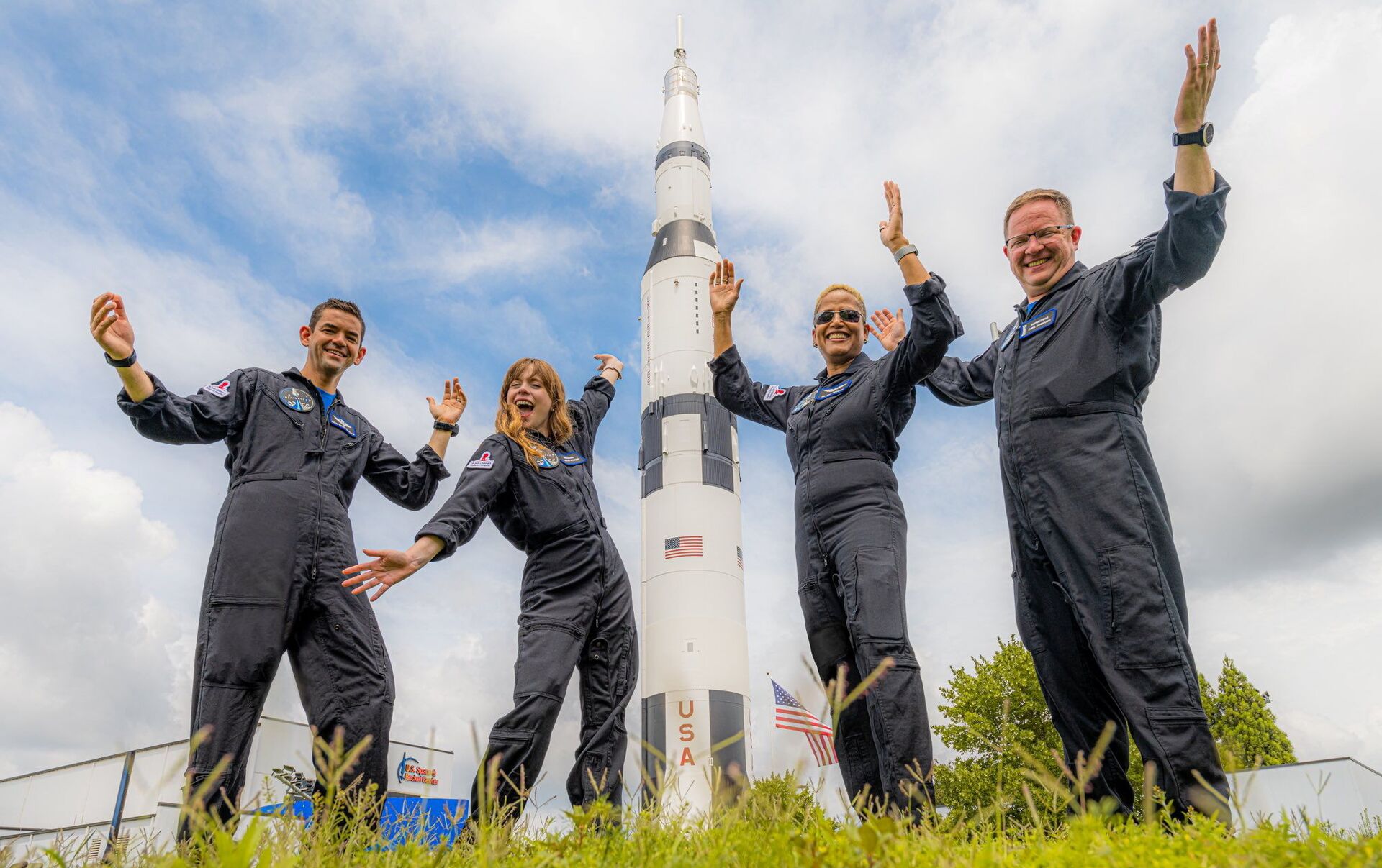 جماهير تحيي طاقم "Inspiration4" المكون من كريس سيمبروسكي وسيان بروكتور وجاريد إيزاكمان وهايلي أرسينو، أول طاقم مدني يسافر على متن صاروخ "سبايس إكس فالكون 9 إلى الفضاء، فلوريدا، الولايات المتحدة 15 سبتمبر 2021