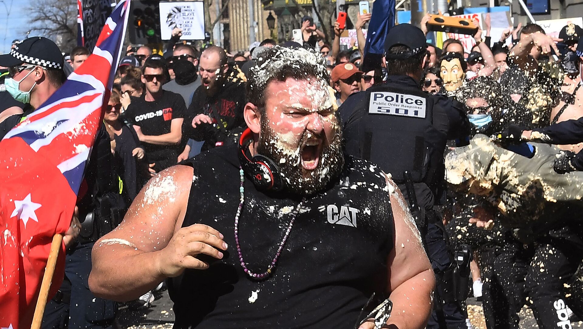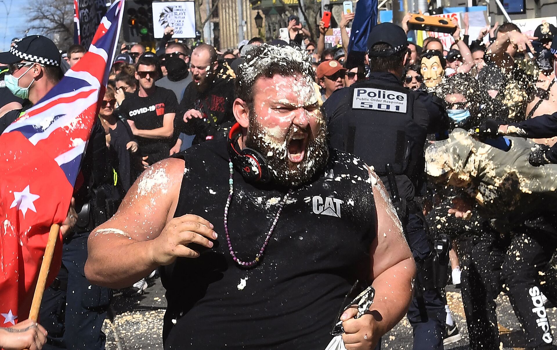 حطمت حشود من المحتجبن في مدينة ملبورن الأسترالية خط الشرطة واعتدت على عناصر الأمن خلال احتجاجات "تجمع الحرية" المناهضة للإغلاق الجديد بسبب الجائحة.