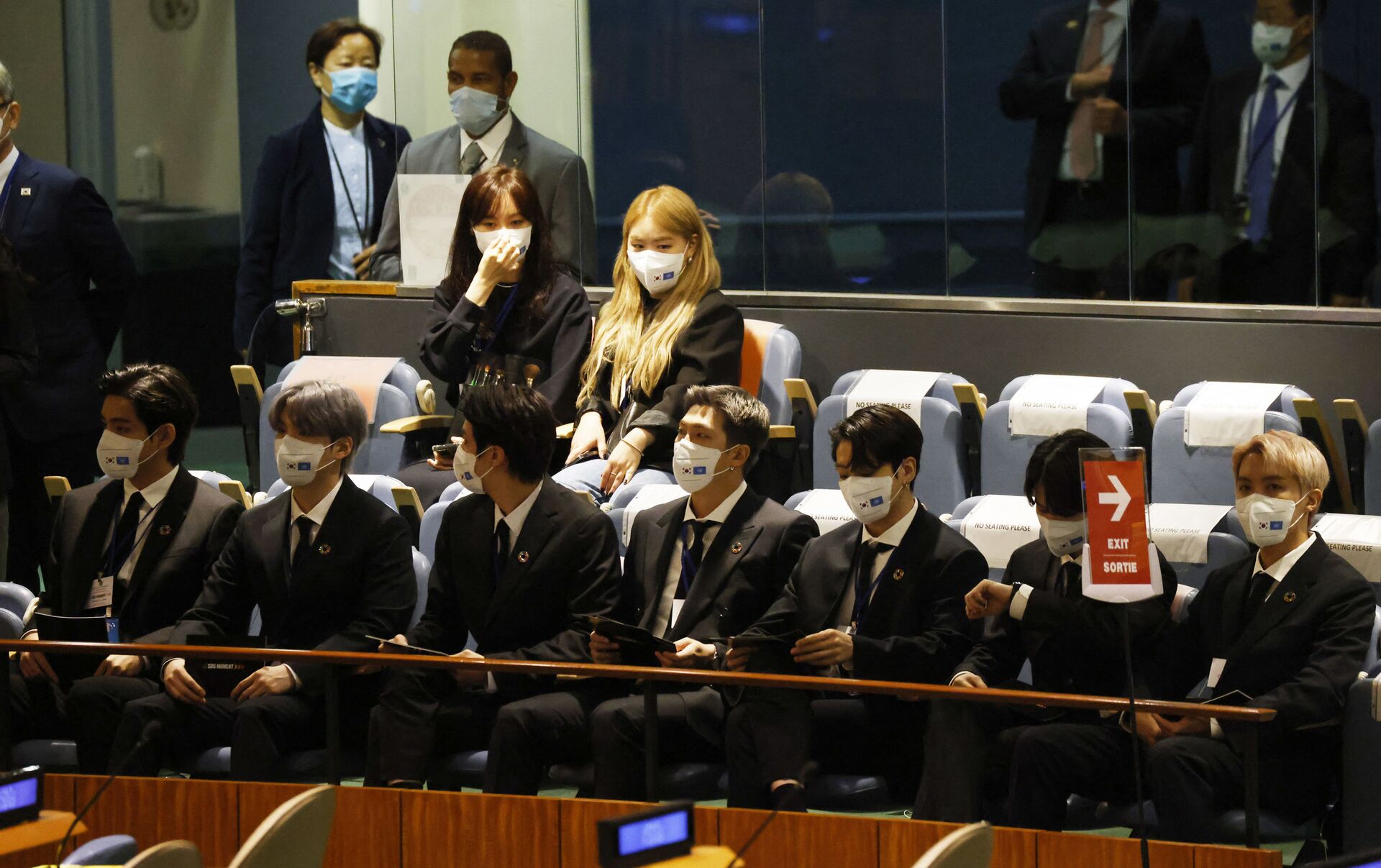 أحدث فريق الغناء الكوري الشهير "بي تي إس" ضجة عالمية واسعة، خلال ظهورهم الرسمي الأول كدبلوماسيين عن بلادهم.