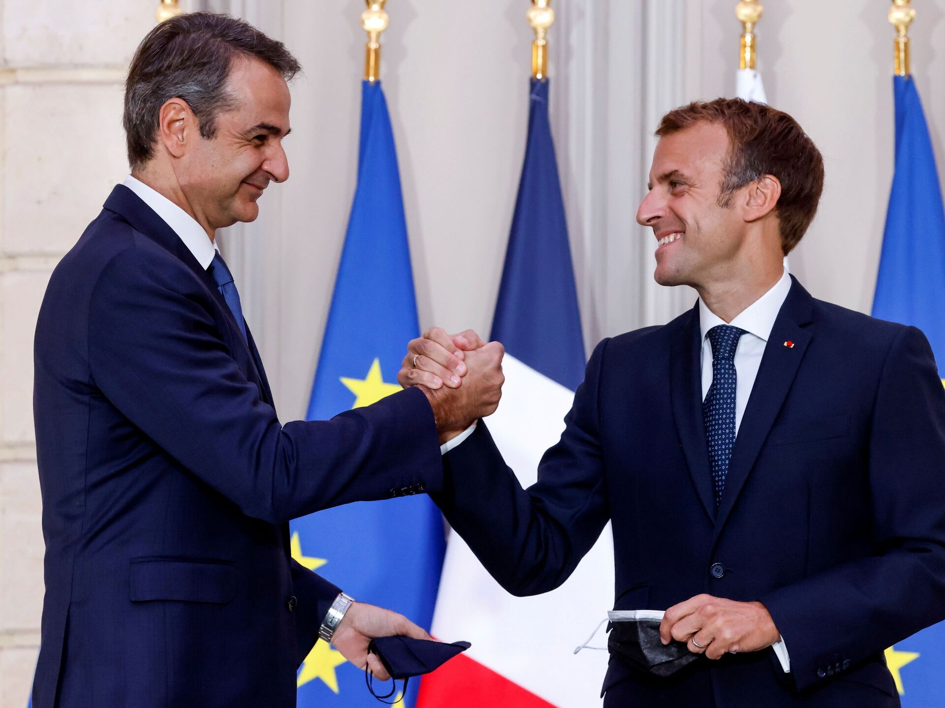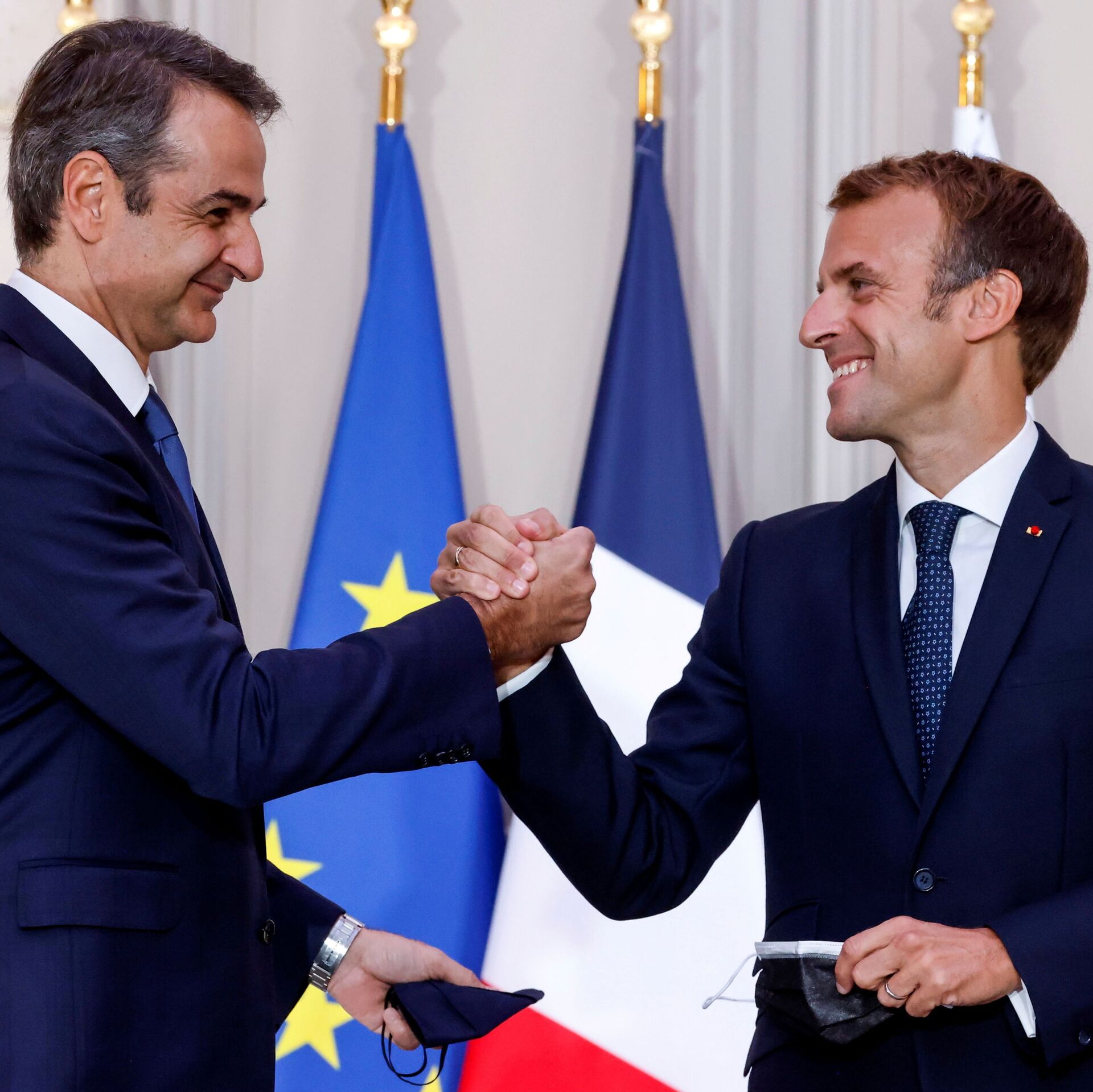 ماكرون أن اليونان ستشتري ثلاث فرقاطات فرنسية ستبنيها مجموعة نافال (مجموعة صناعية فرنسية متخصصة في مجال الدفاع البحري) في لوريان غربي فرنسا.