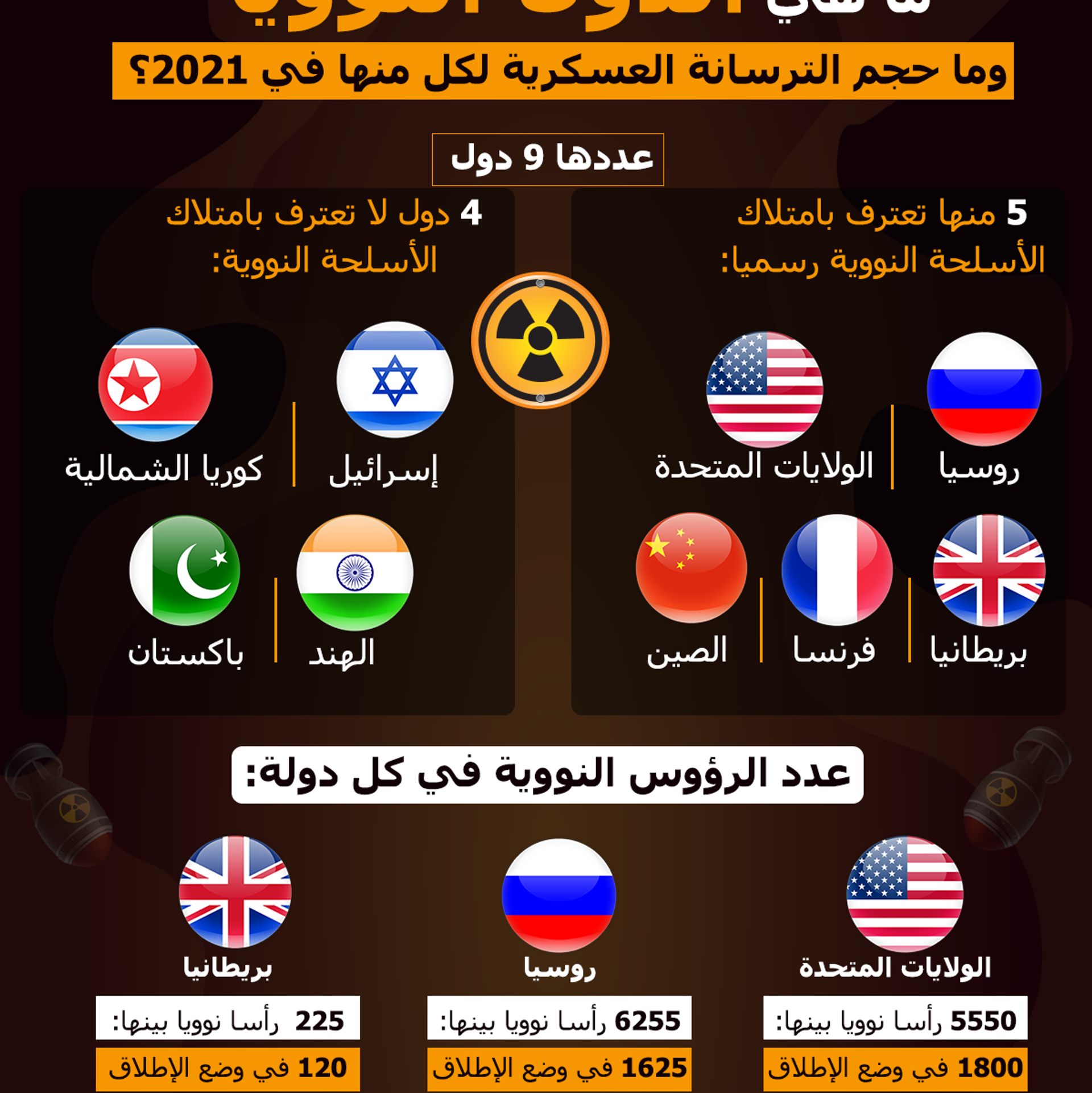 ما هي الدول النووية وما حجم الترسانة العسكرية لكل منها في 2021؟