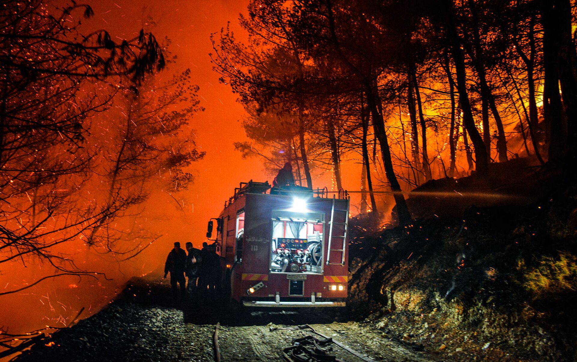 ليلة نارية شهدتها محافظة اللاذقية غربي سوريا، أمس، مع اندلاع 9 حرائق، ليزيد الطين بلة انفجارات ناجمة عن ألغام وعبوات ناسفة من مخلفات المجموعات الإرهابية التي كانت تسيطر على بعض الغابات قبل تحريرها.