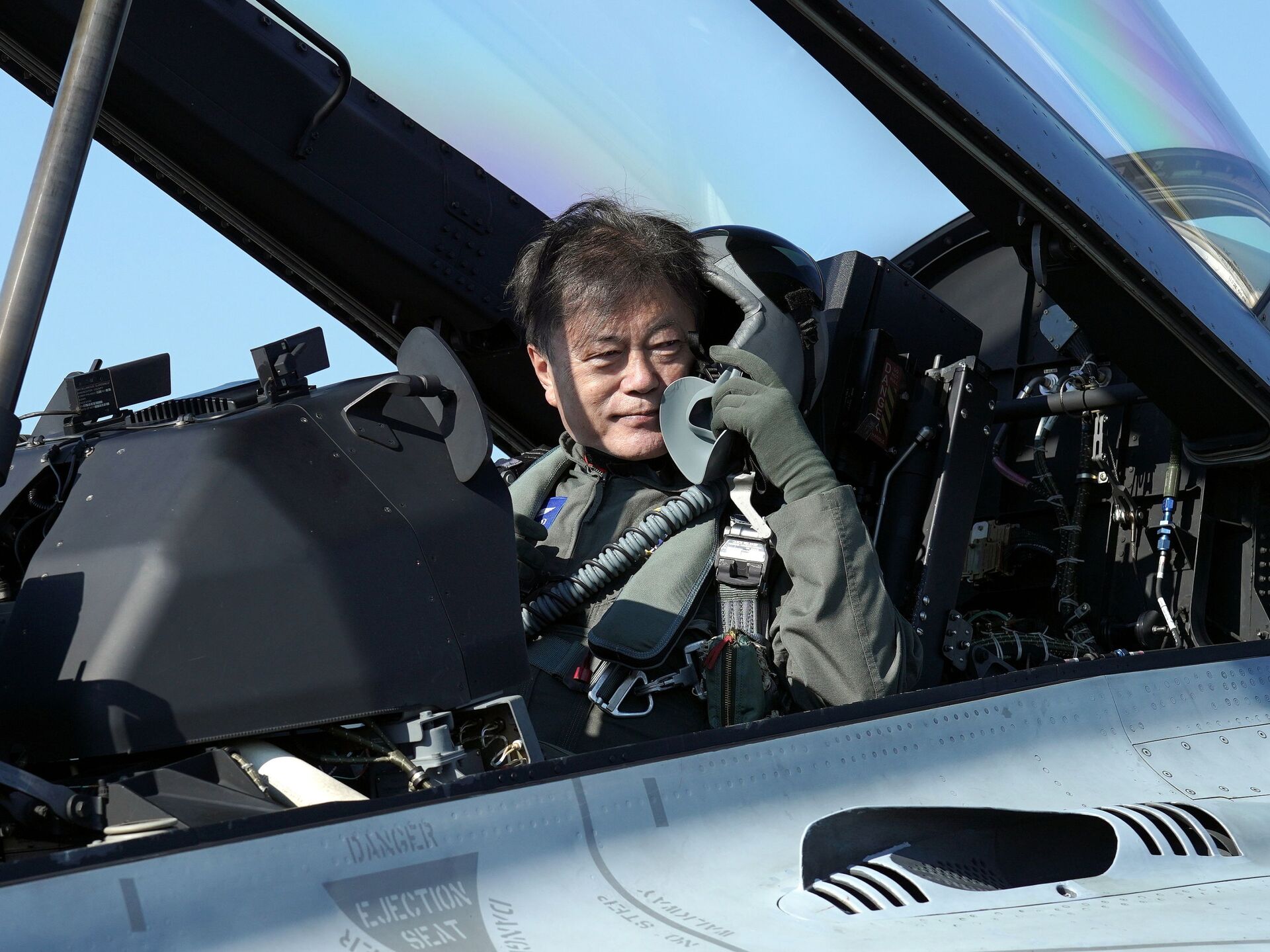 أول رئيس كوري جنوبي يحلق بمقاتلة هجومية محلية الصنع... فيديو