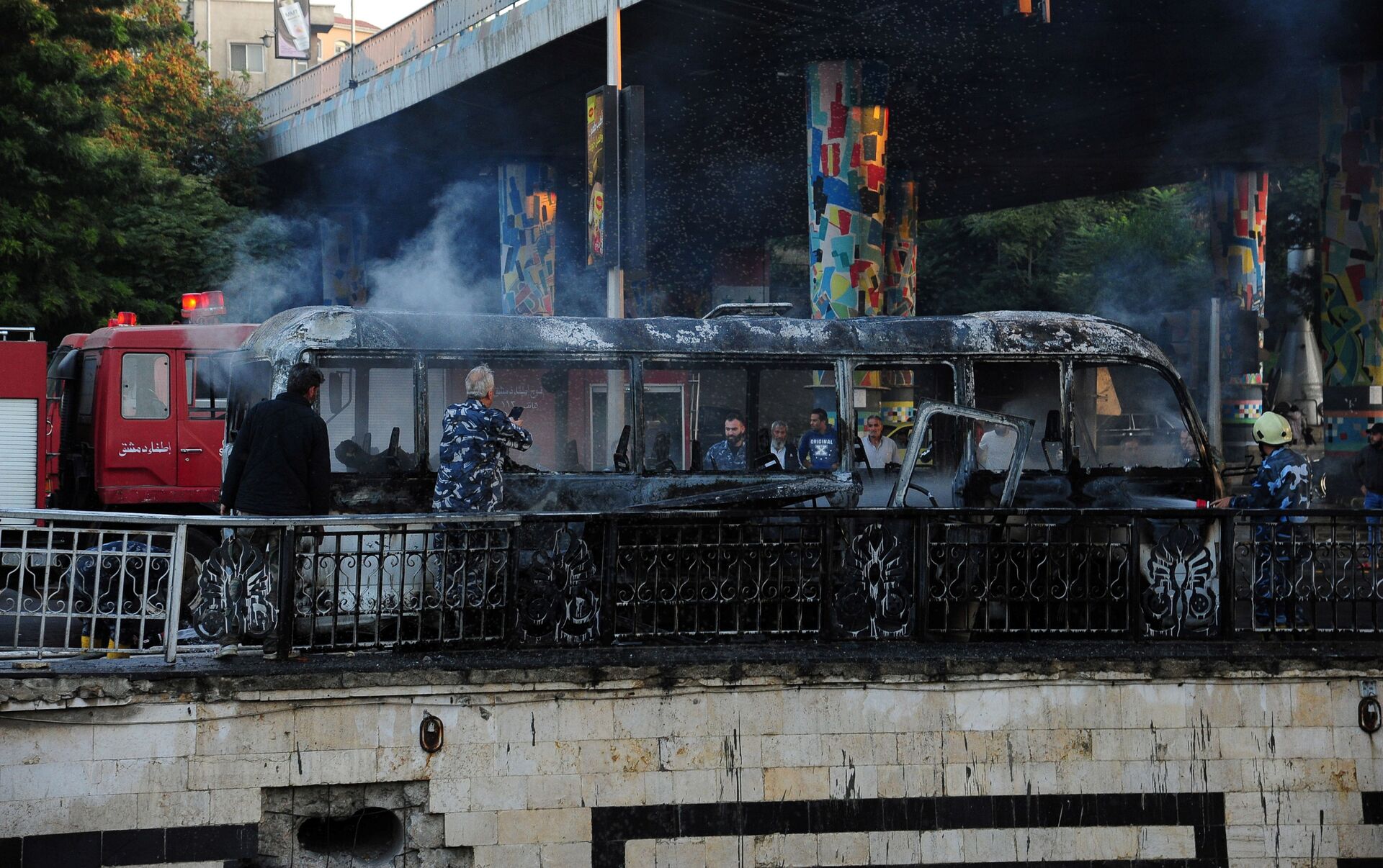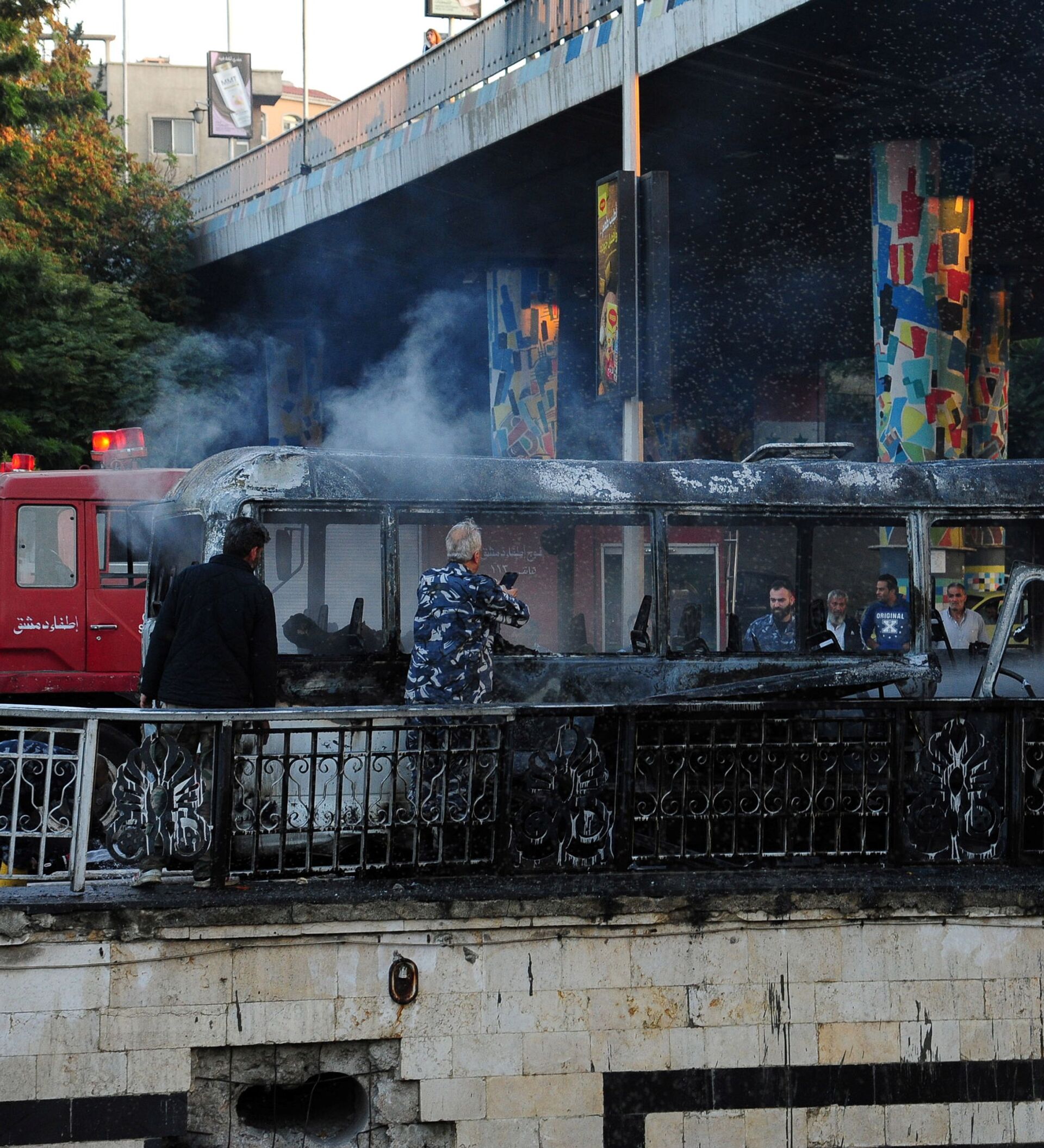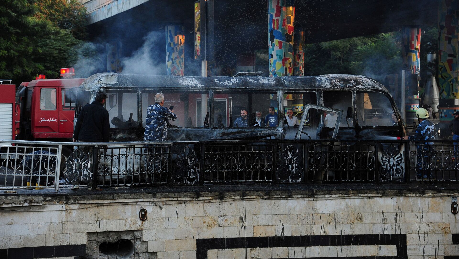 © REUTERS / SANAتفجير يستهدف حافلة مبيت عسكري في دمشق، سوريا 20 أكتوبر 2021