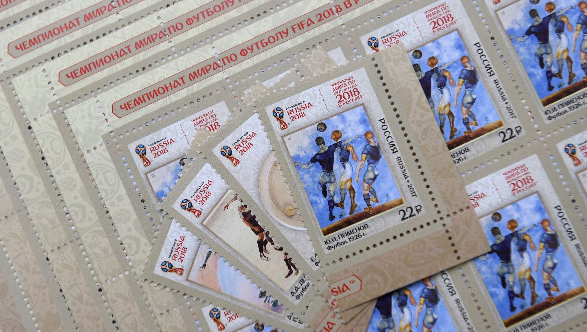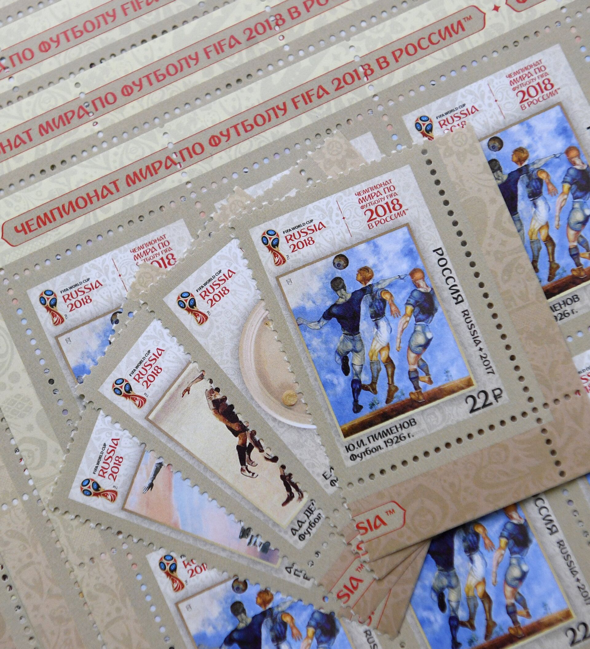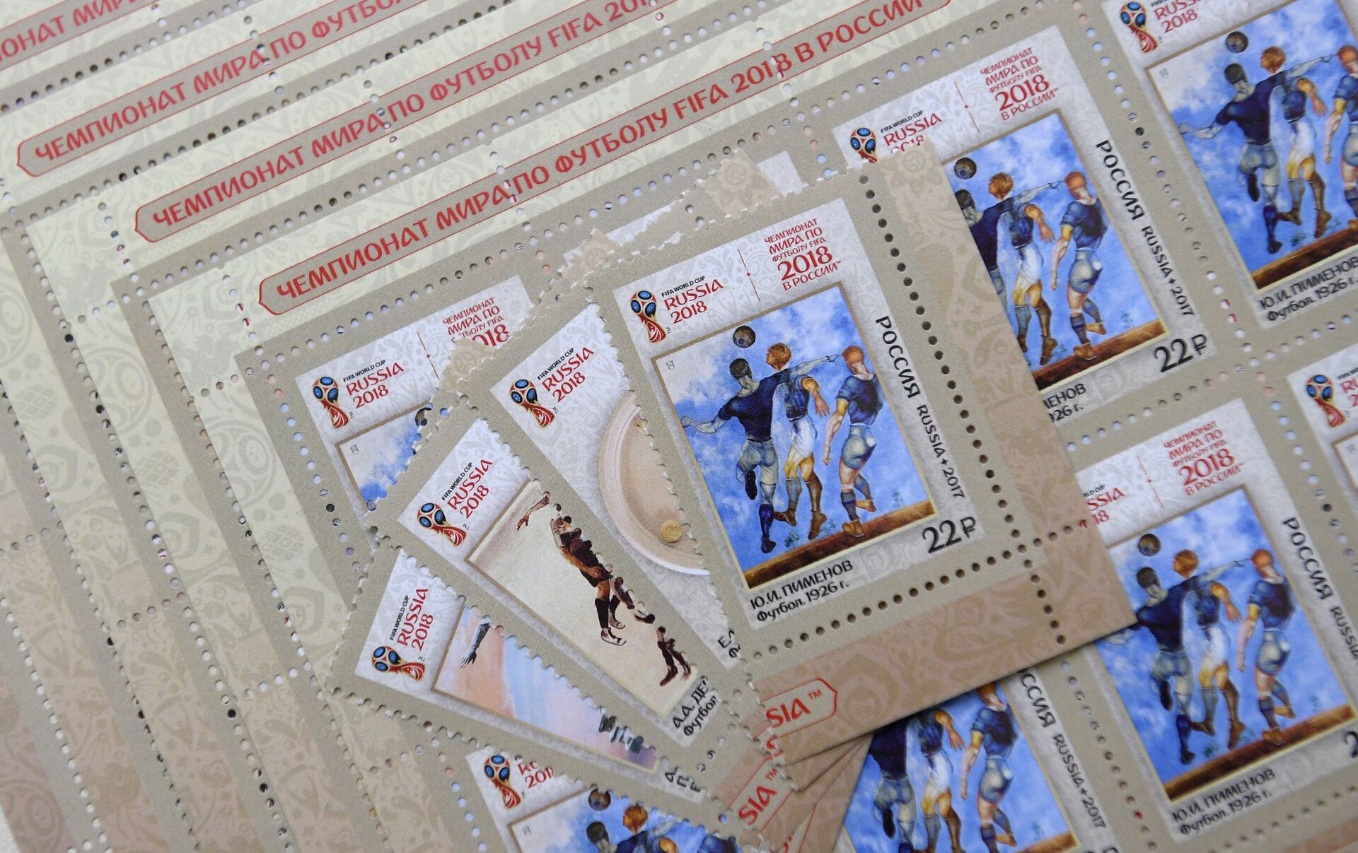 © Sputnik . Aleksei Filipov / الانتقال إلى بنك الصورإصدار أربع طوابع بريد مخصصة لكرة القدم، كأس العالم 2018