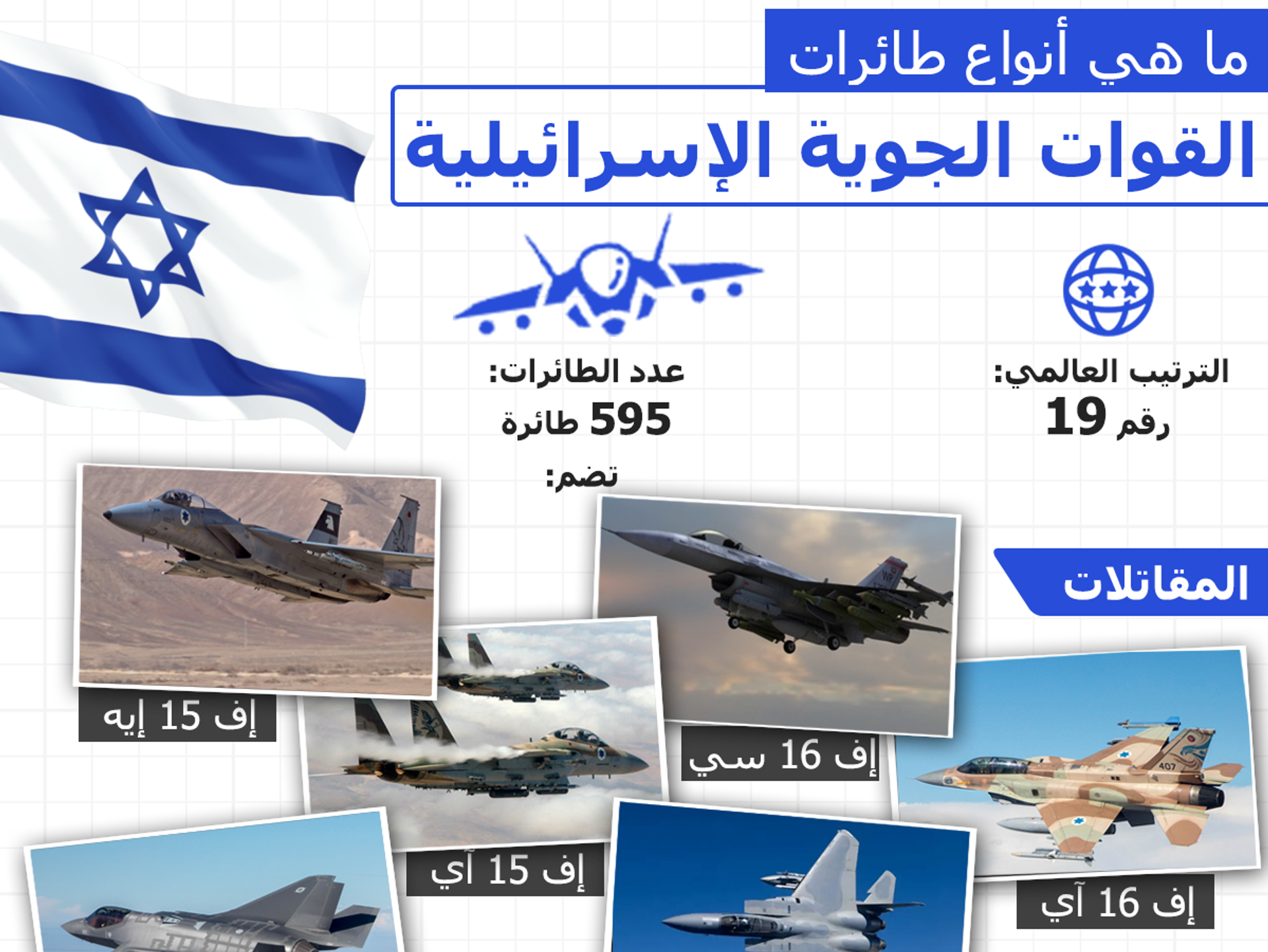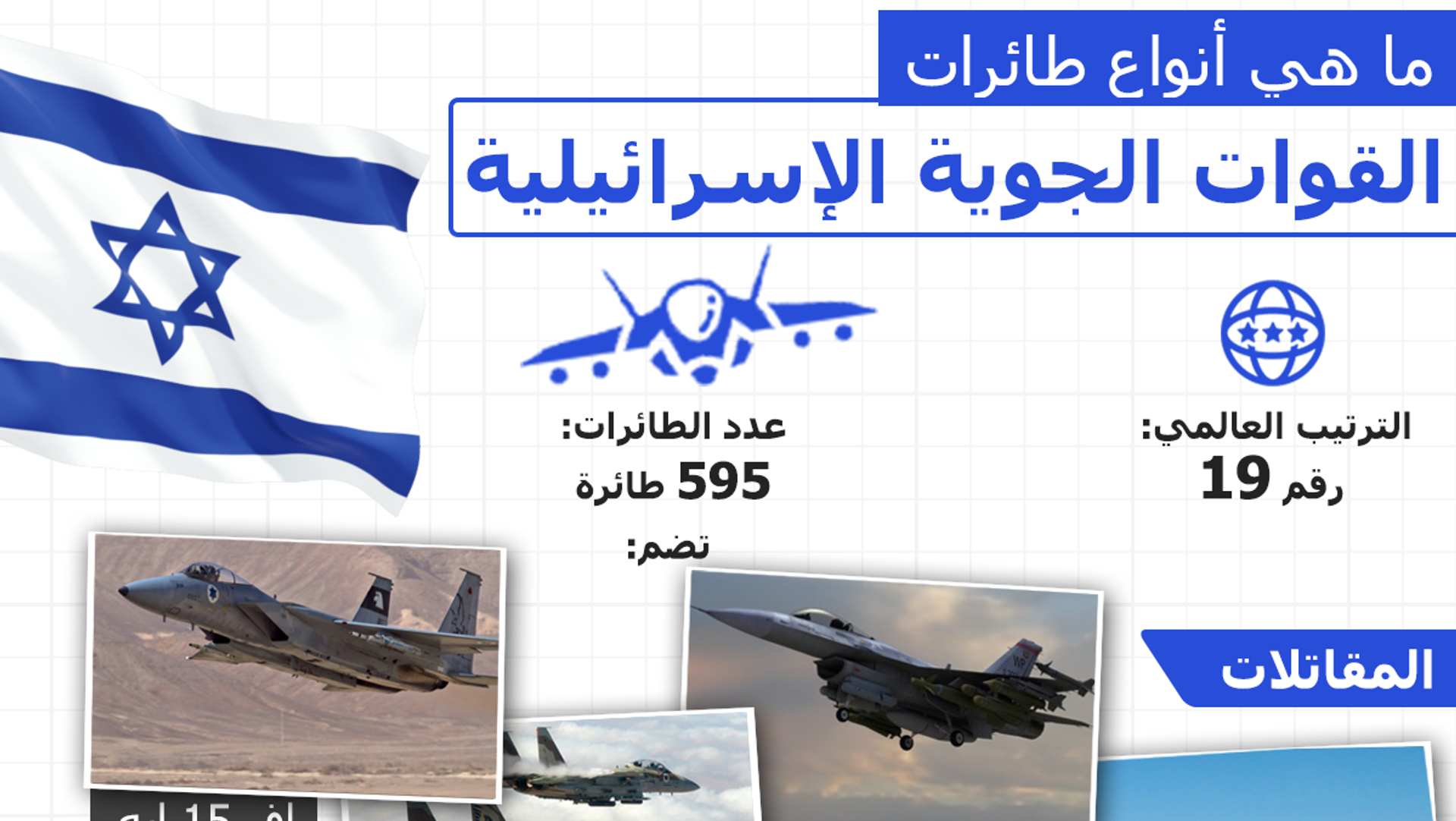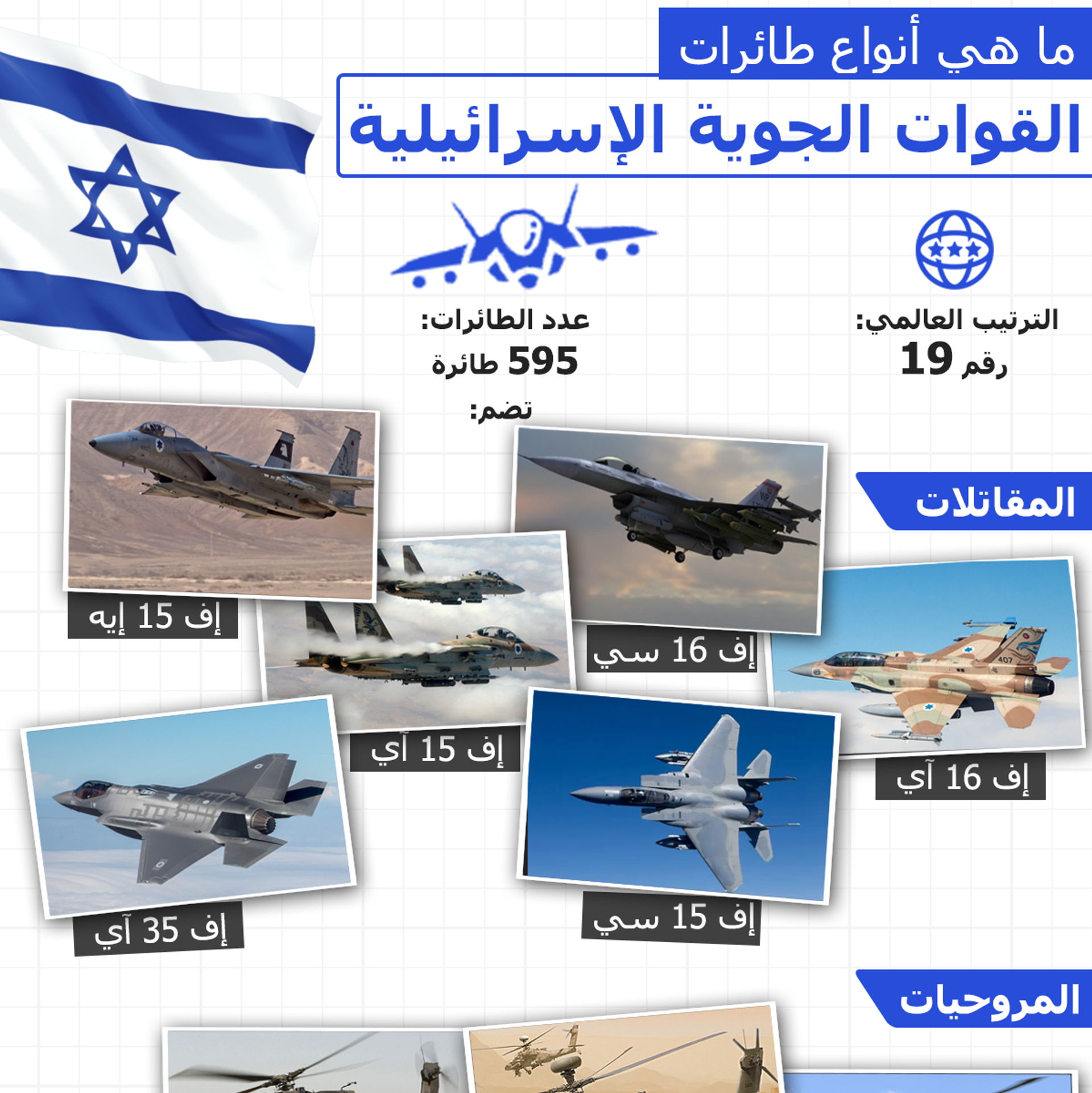 تصنّف القوات الجوية الإسرائيلية في المرتبة رقم 19 بين أقوى القوات الجوية في العالم، وفقا لتقرير عن الجيش الإسرائيلي لموقع "غلوبال فاير بور" الأمريكي.