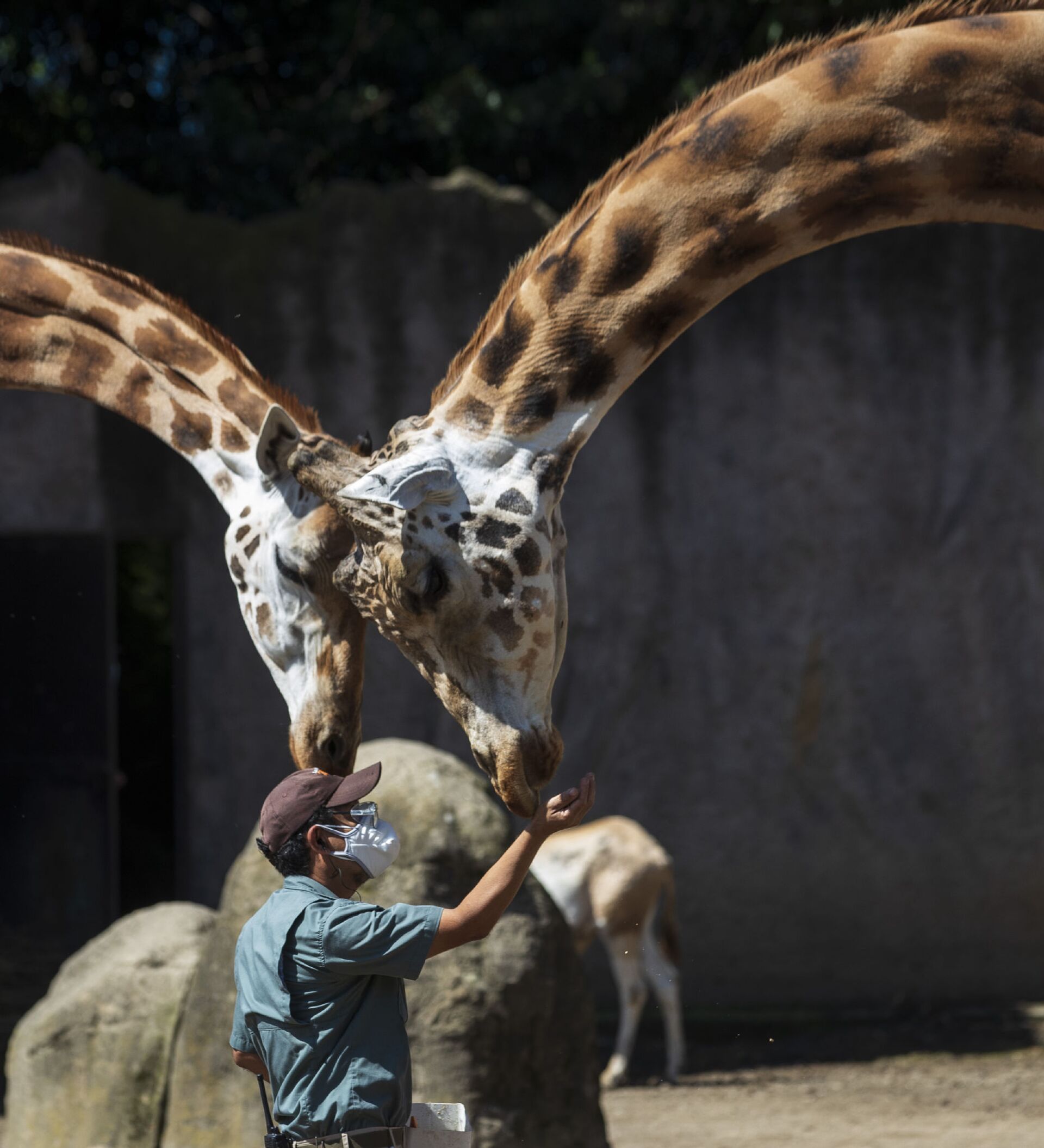 بدأت "معركة الجودو" اللطيفة، باستخدام الزرافات لأعناقها العملاقة لضرب أجساد بعضها البعض.