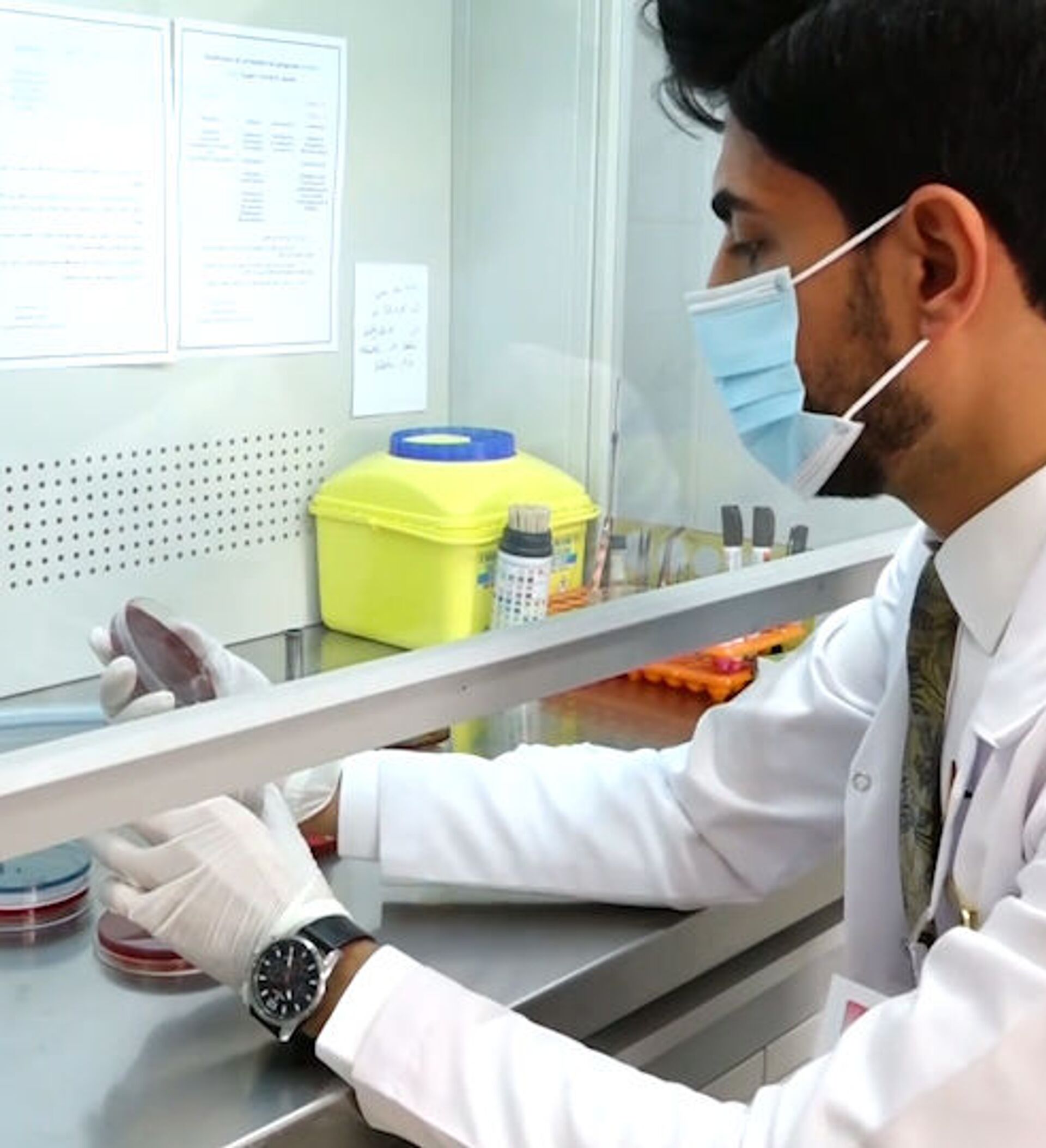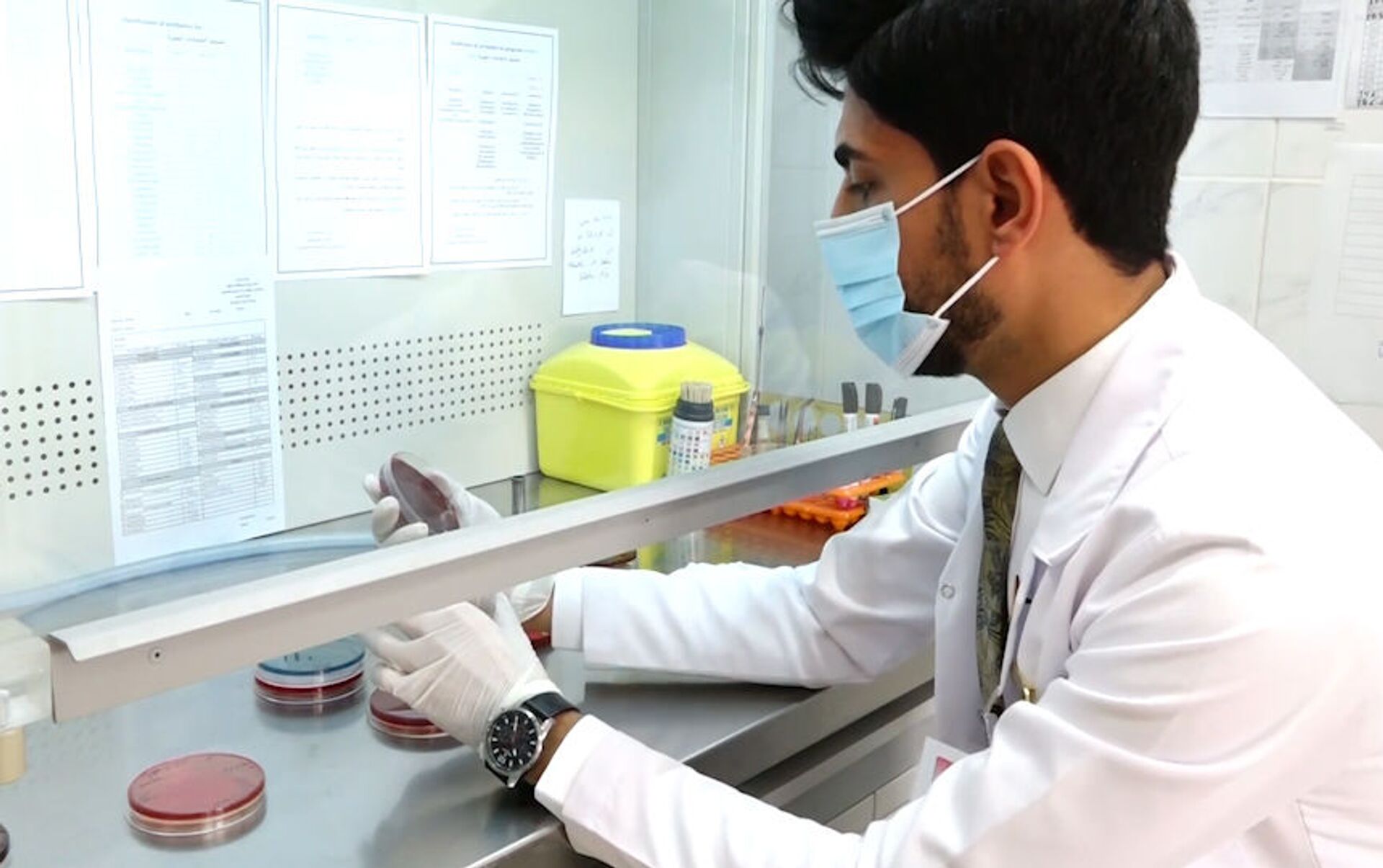 وشوهد الياسري وهو يستبدل أدوات الفنان مثل القماش والفرش والطلاء بأدوات معملية مثل ألواح العجار والأنابيب والمشاعل الغازية، وأهم مكون وهو البكتيريا في مقطع تم تصويره، يوم الأربعاء، في كركوك.
