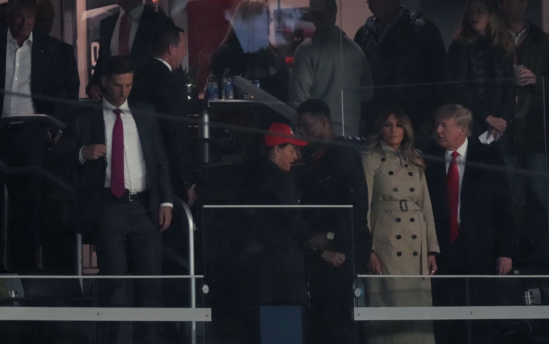 © REUTERS / John David Mercerالرئيس الأمريكي السابق، دونالد ترامب، وزوجته، ميلانيا ترامب، يحضران المباراة الرابعة من بطولة العالم للبيسبول 2021 بين أتلانتا، جورجيا، أمريكا، 30 أكتوبر/ تشرين الأول 2021