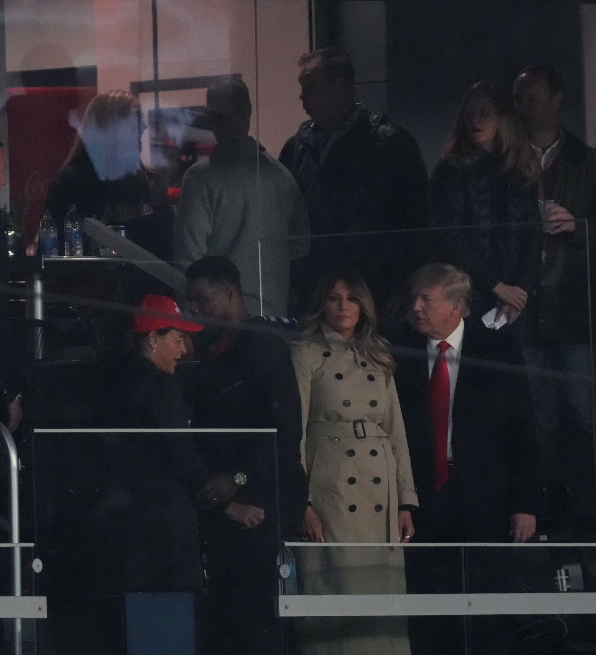 الرئيس الأمريكي السابق، دونالد ترامب، وزوجته، ميلانيا ترامب، يحضران المباراة الرابعة من بطولة العالم للبيسبول 2021 بين أتلانتا، جورجيا، أمريكا، 30 أكتوبر/ تشرين الأول 2021 - سبوتنيك عربي, 1920, 01.11.2021