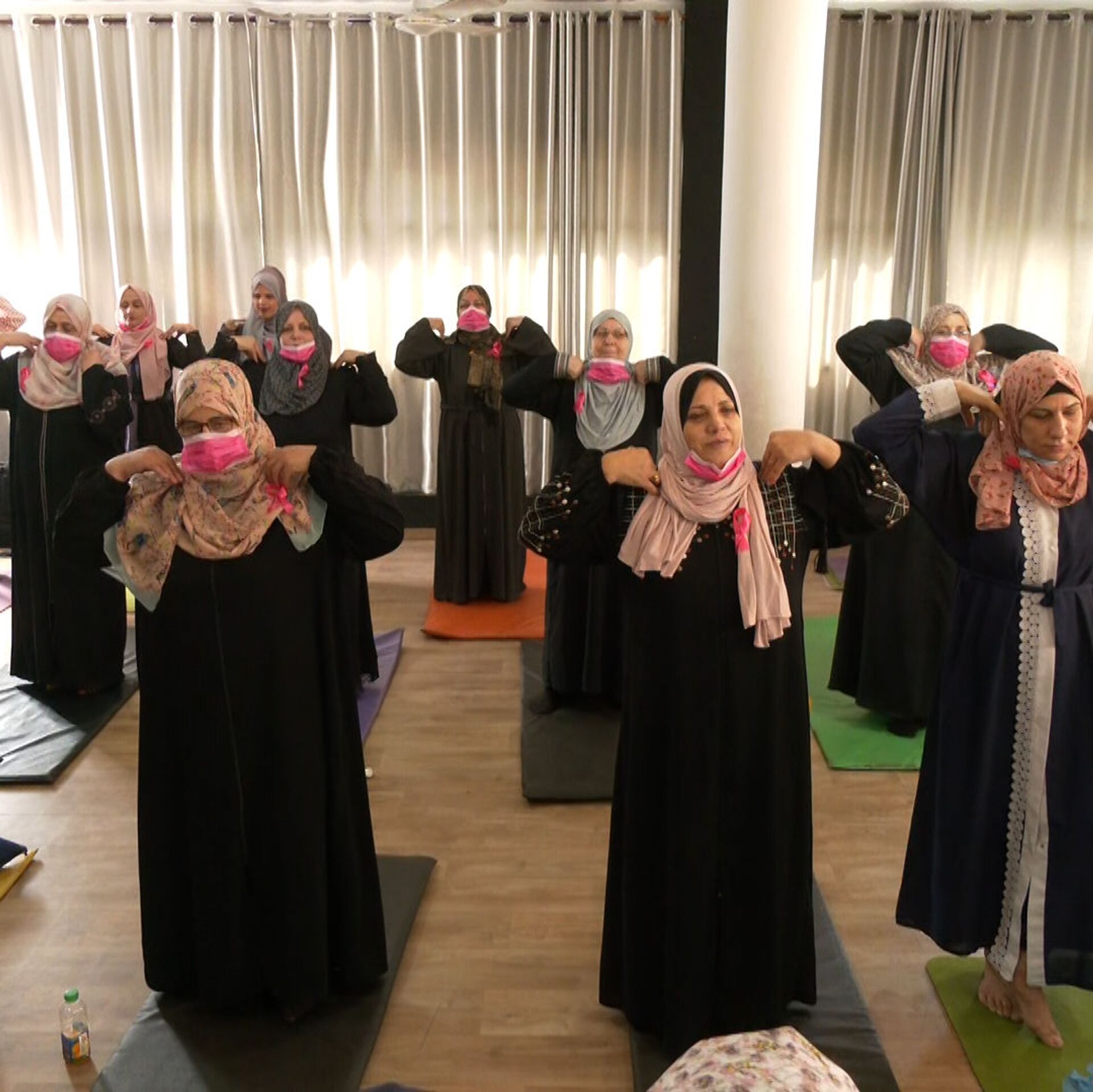 "اليوغا" تساعد مريضات السرطان وناجيات في غزة من التغلب على أوجاعهن
