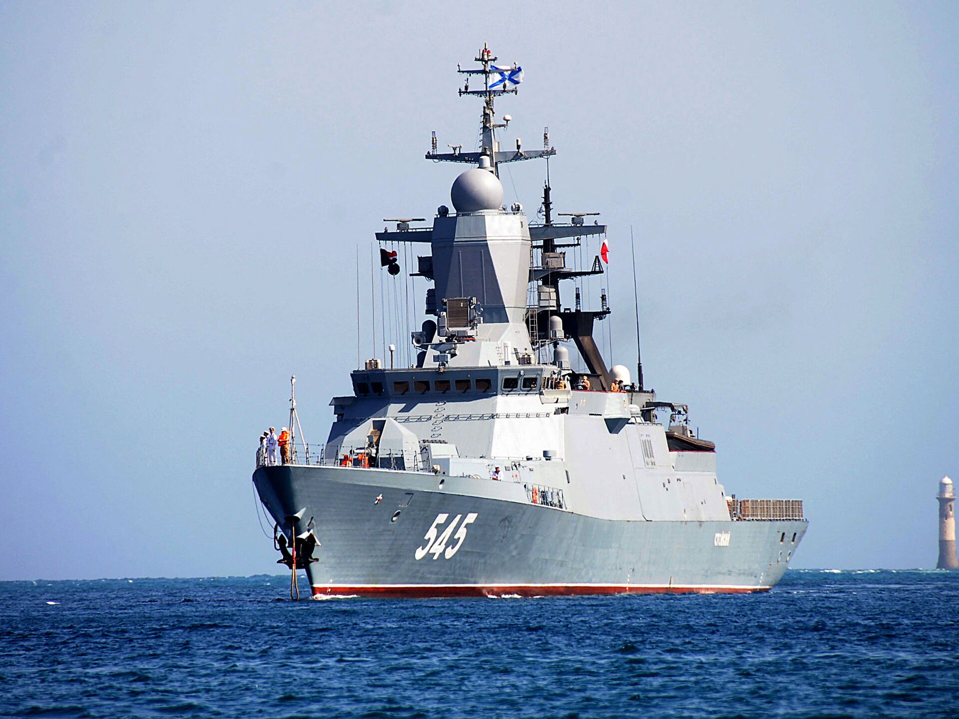 فرقاطة الصواريخ "أدميرال غريغوروفيتش" وسفينة الدورية "دميتري روغاتشوف") بدأت بتنفيذ قصف مدفعي ضد الأهداف الافتراضية المعادية.