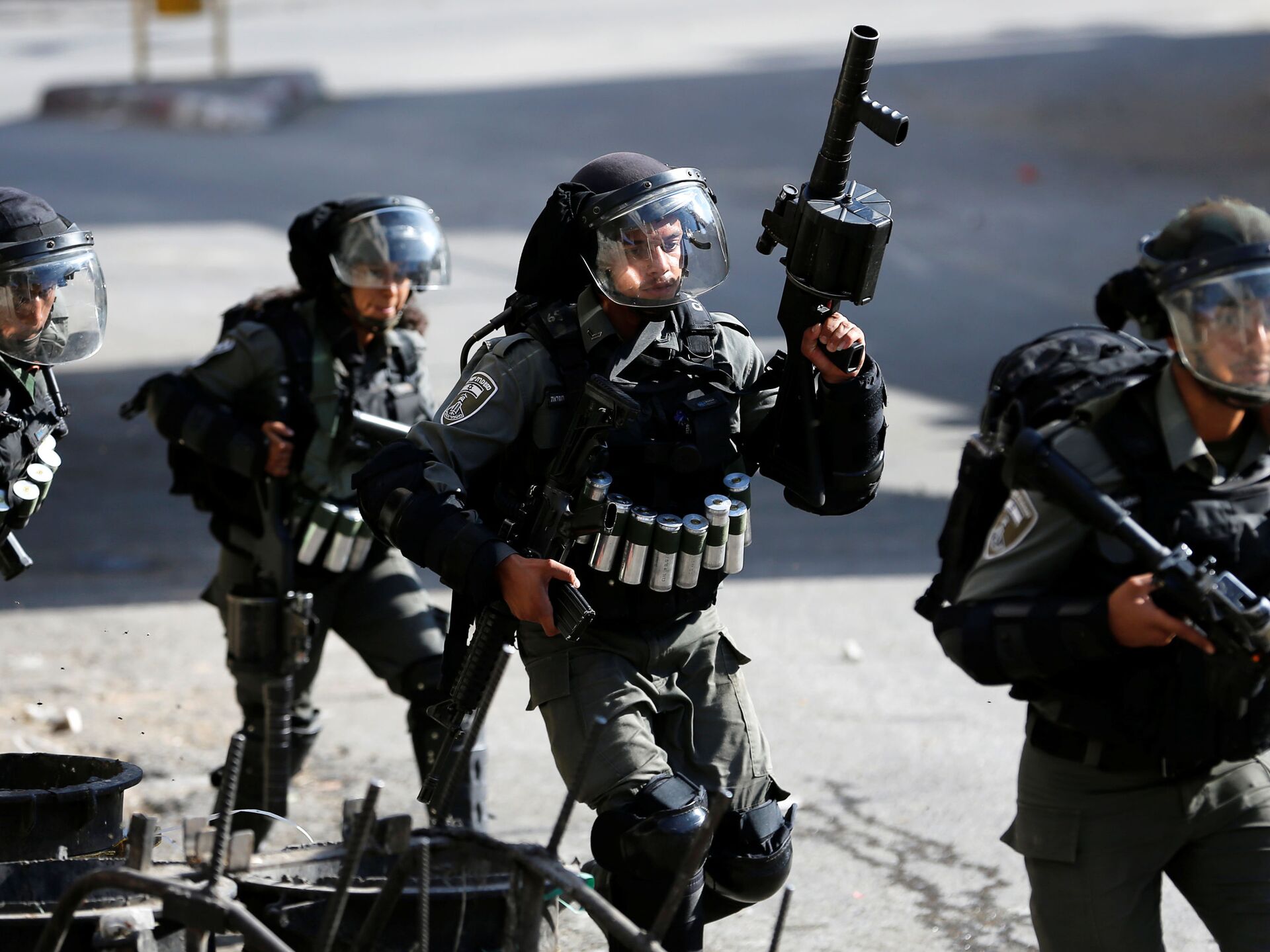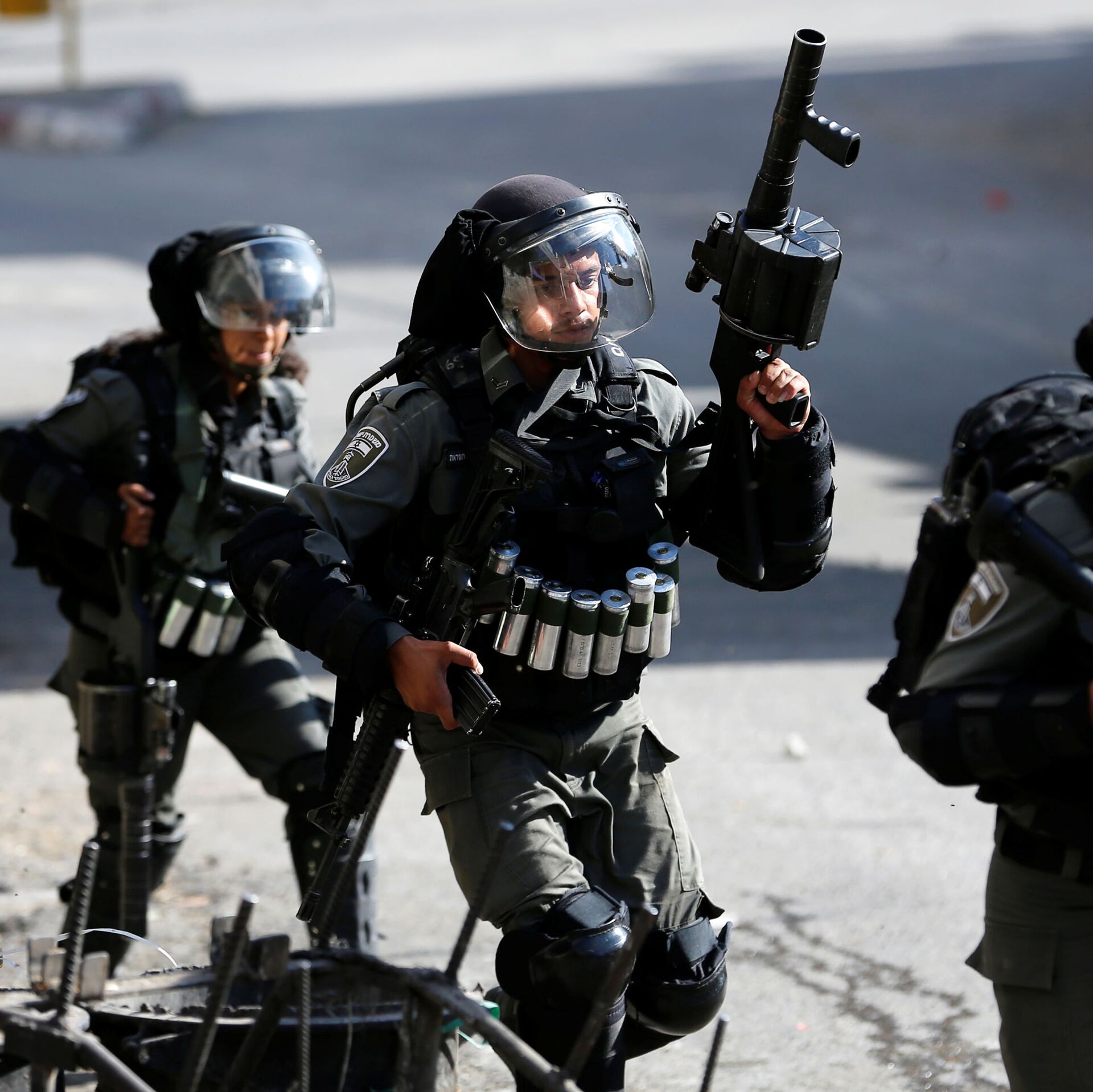 © REUTERS / Mussa Qawasmaاحتجاجات ضد خطة الضم الإسرائيلية لأراضي الضفة الغربية،عناصر القوات الإسرائيلية، في الخليل، يوليو 2020