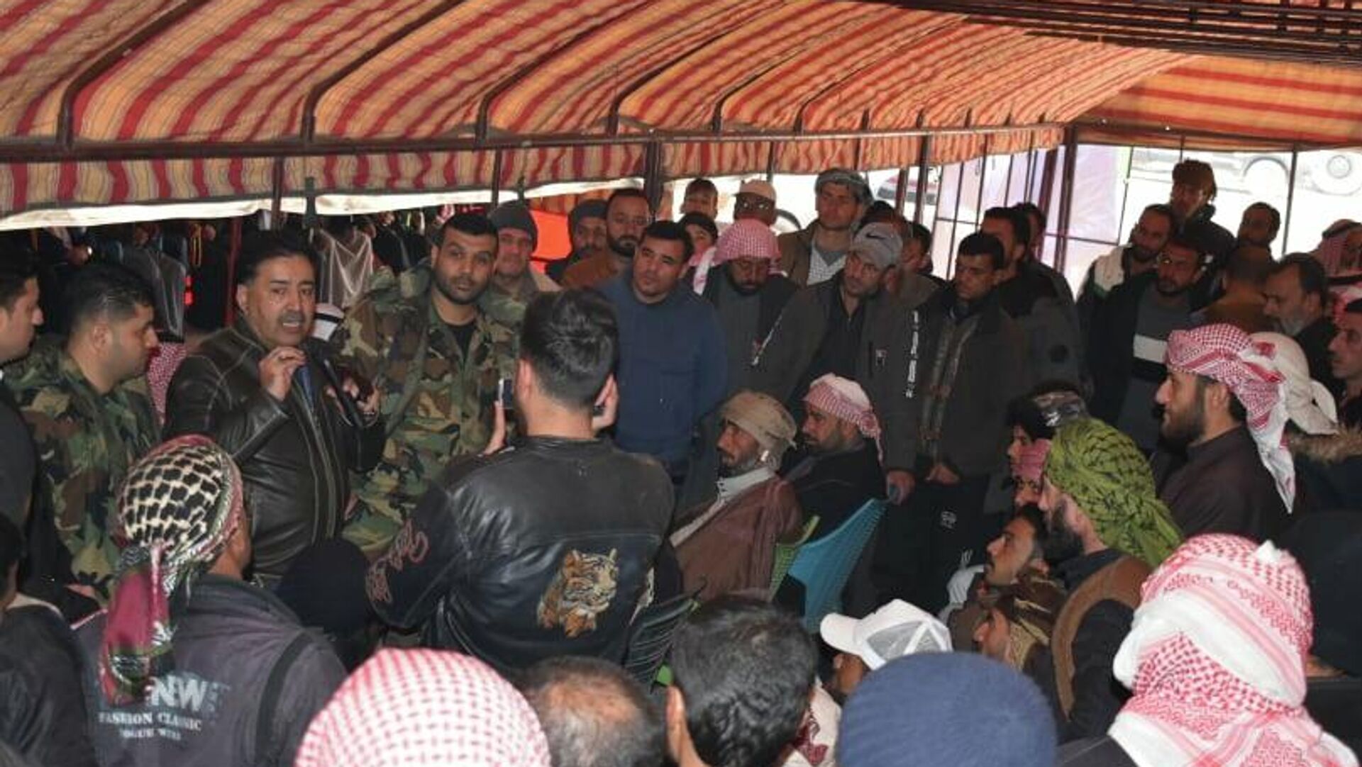 مسلحون لدى الجيش الأمريكي يسلمون أنفسهم للجيش السوري، ضمن تسويات الجيش السوري في دير الزور، سوريا