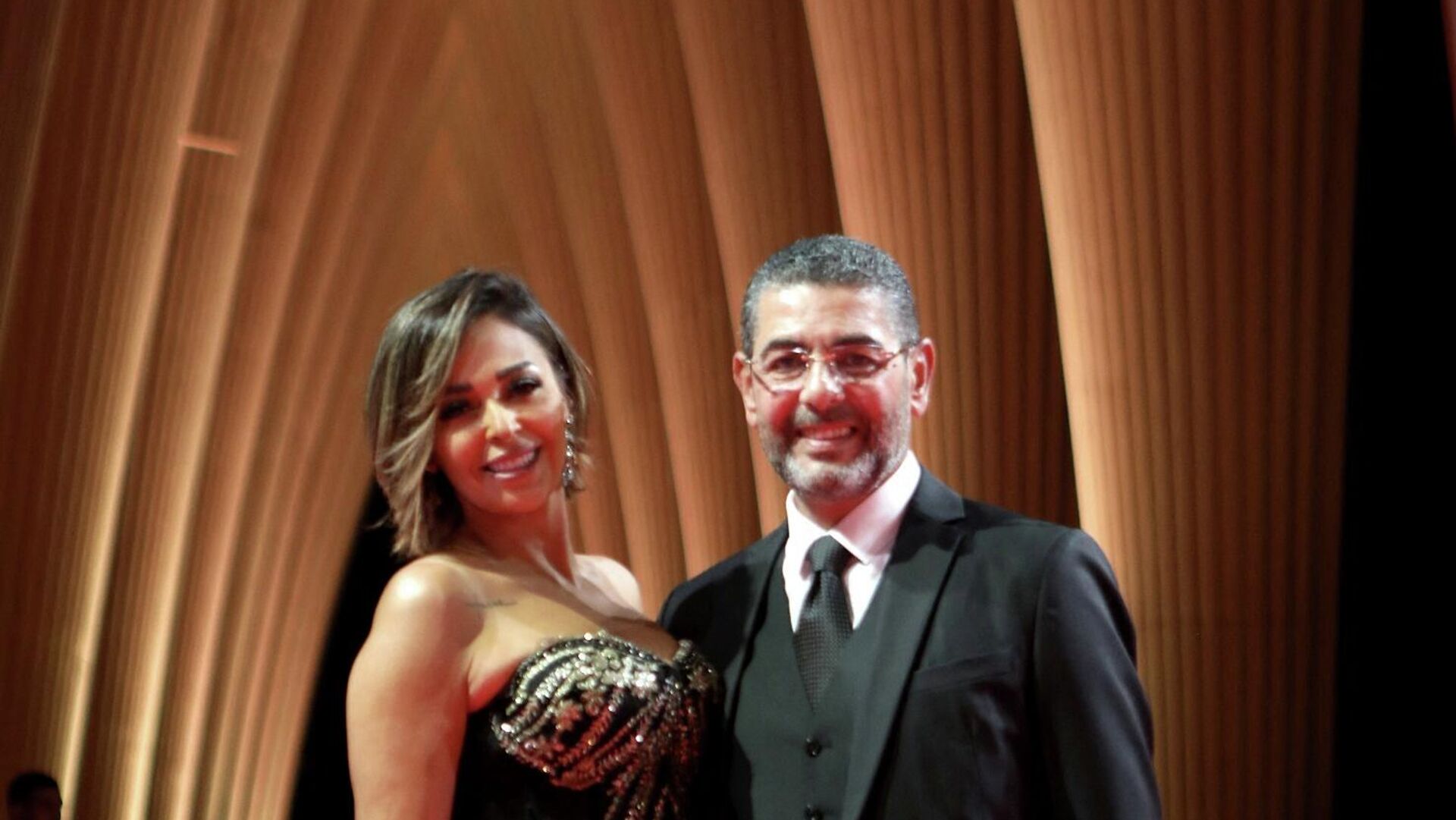 © AFP 2023 / PATRICK BAZالفنانة المصرية، داليا البحيري، مع زوجها، حسن سامي