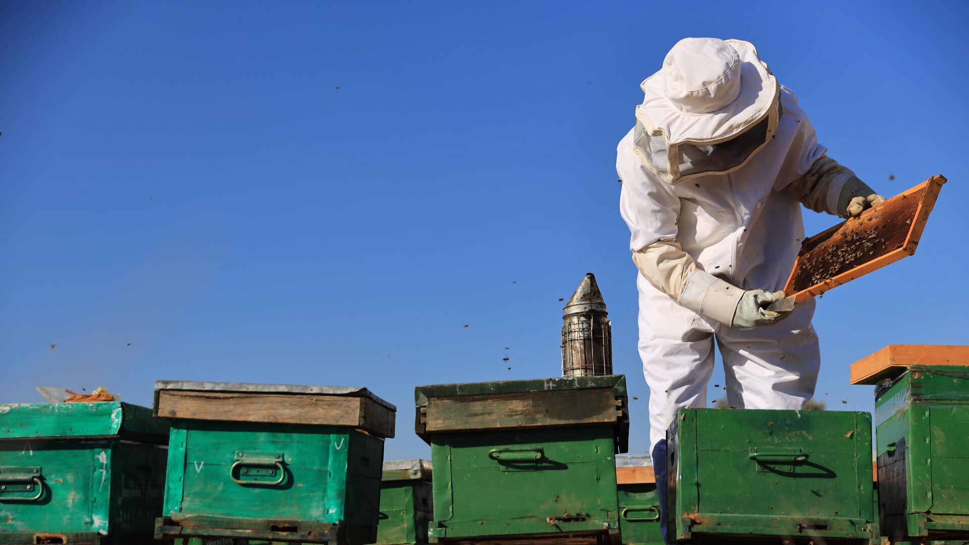 وقال أحد المتظاهرين إن موت مستعمرات النحل يشكل تهديدا ليس فقط على الصناعة، ولكن على النظام البيئي بأكمله في البلاد، وحتى على كوكب الأرض.